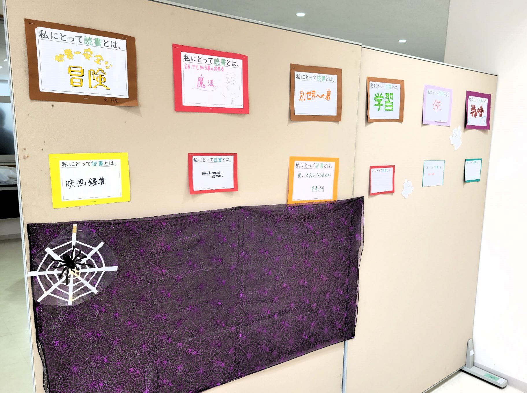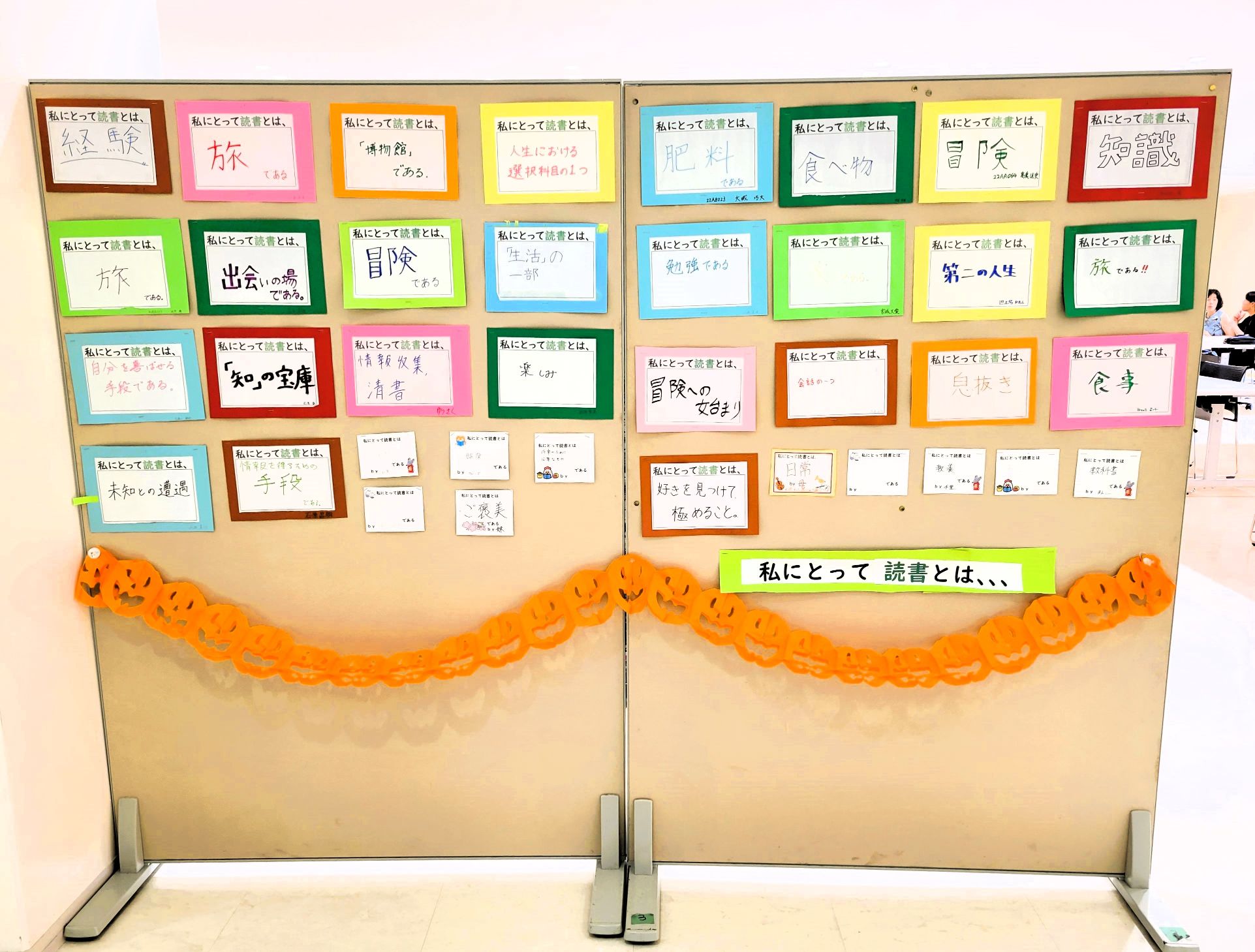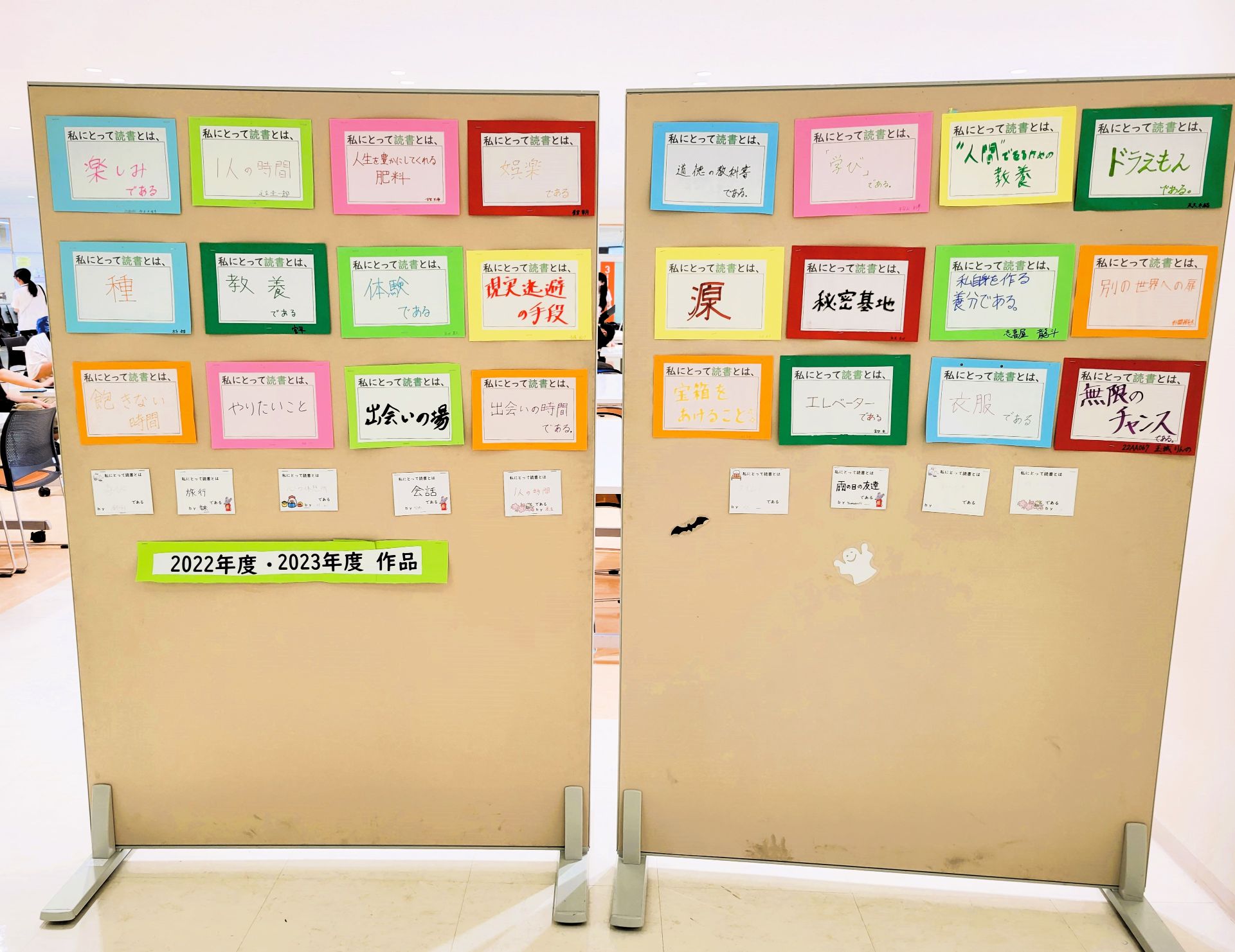 学生一人ひとりが考えた「読書」のイメージもとても個性的で面白いので、学内のみなさまはぜひご覧いただき、あなたにとっての読書とはなにか、考えていただければと思います。