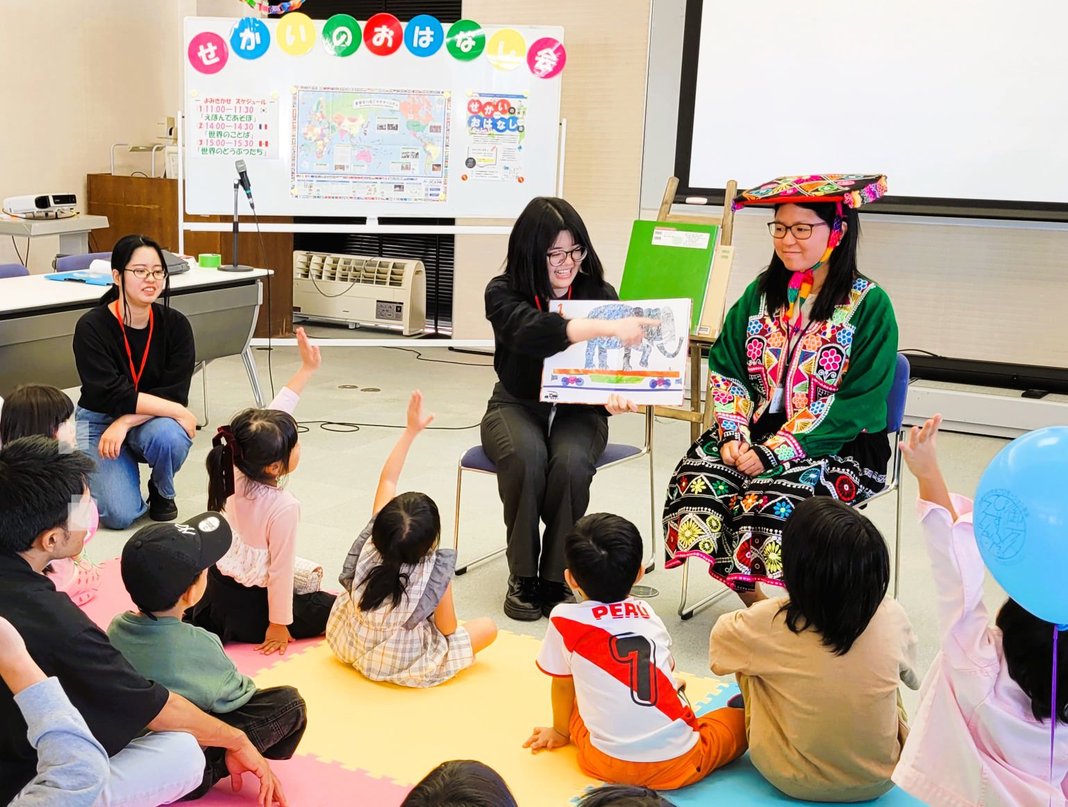 午後3時から開催された「ペルー編」では、ペルーから来た県費留学生のマユミさんと一緒に、「せかいのどうぶつたち」をテーマ印、2冊の絵本をつかったおはなし会を行いました。