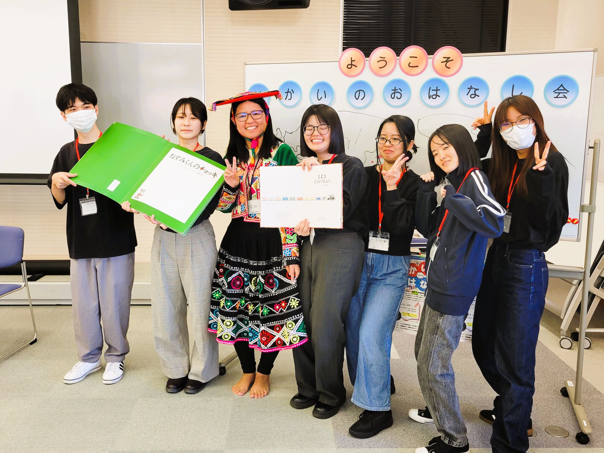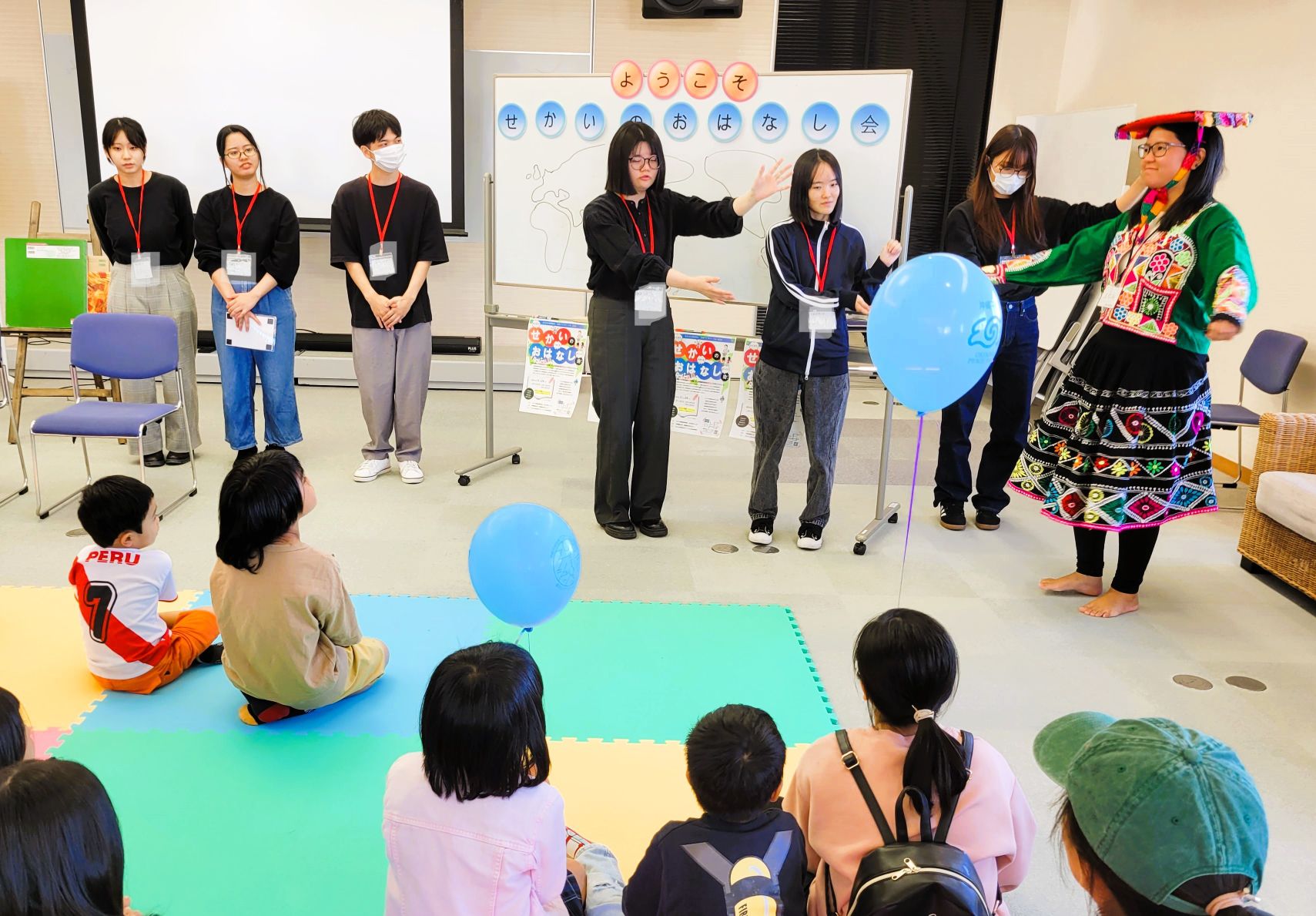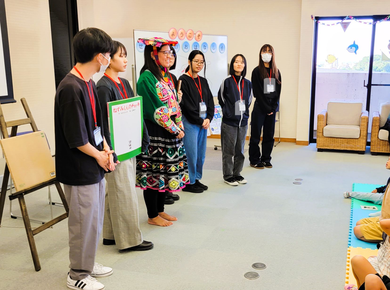 11月24日(日)には、浦添市にあるJICA沖縄で開催された国際交流フェスティバルに参加し、JICA沖縄の図書資料室のスタッフの皆様のご指導の下で、県費留学生制度を利用して来沖されている留学生の皆さんといっしょに、午前中に「韓国編」、午後に「フランス編」「ペルー編」の3つのテーマで、受講生たちが3つのグループに分かれて、「せかいのおはなしかい」というイベントの企画・運営にチャレンジしました。