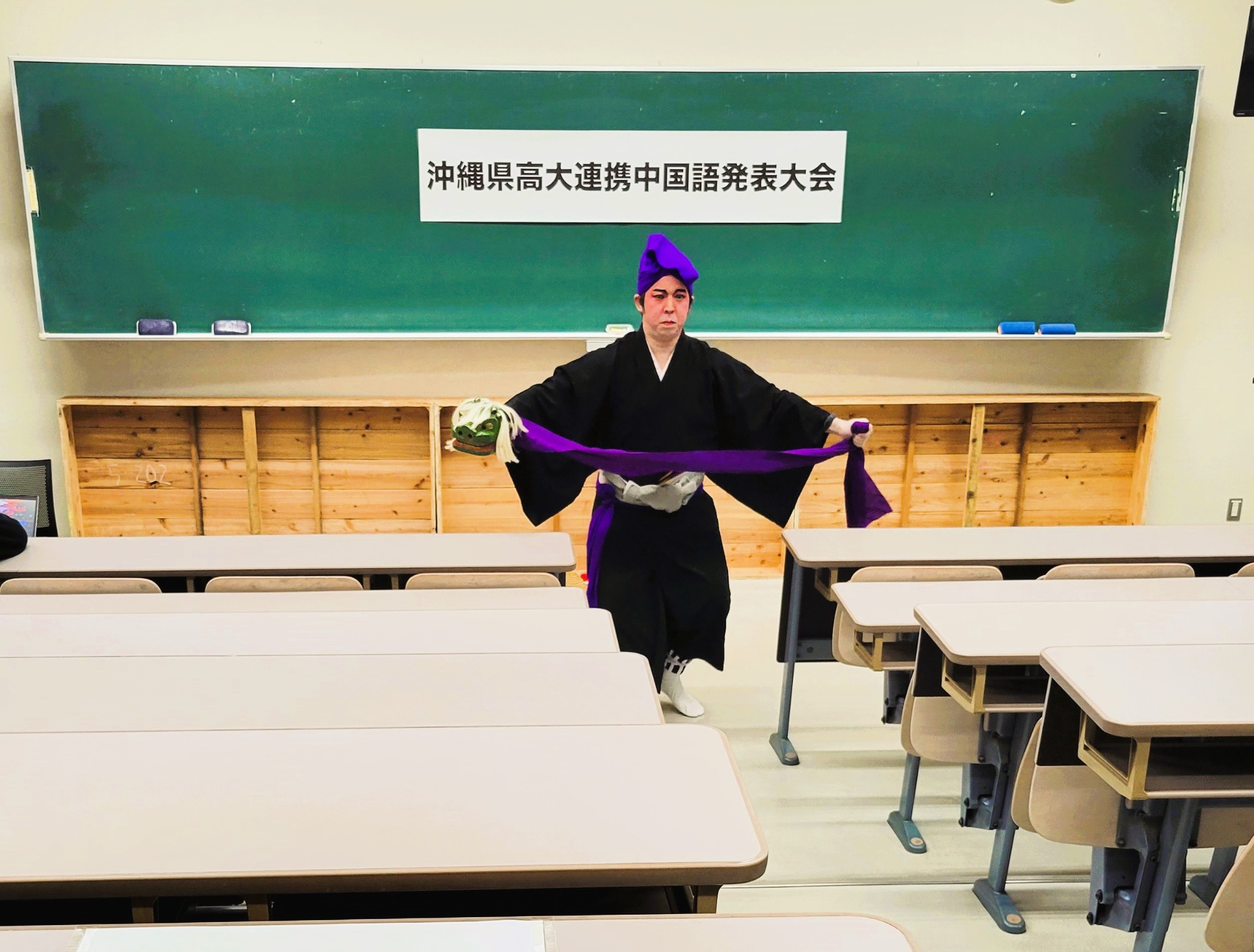 【沖縄県高大連携中国語発表大会が開催され、我部先生が琉舞2演目を披露しました!】