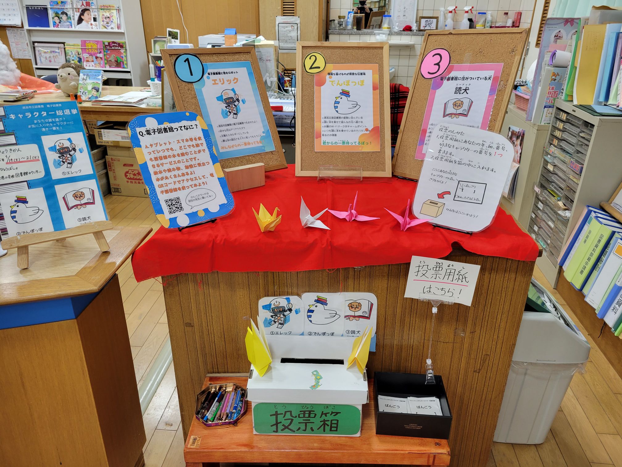 どのキャラクターもかわいくて、投票会場設置後に、投票をお願いした図書委員の皆さんたちも「1つ選べない!」「どれもかわいい!」と迷っている様子でした。