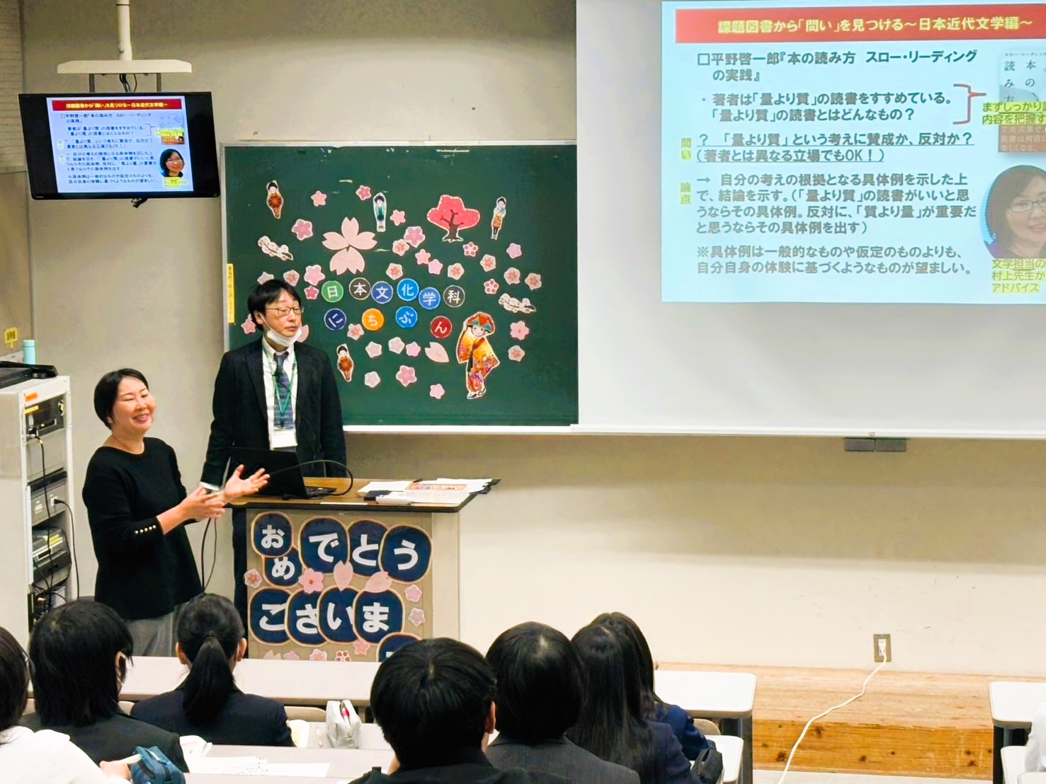 この日のガイダンスでは、文学分野から村上学科長から、図書館情報学分野は山口先生から、それぞれ論点の設定方法など、課題の取り組み方を丁寧に説明しました。