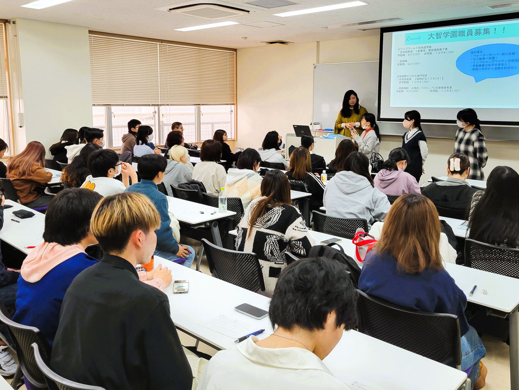 日本文化学科では、1年生の必修科目「リテラシー入門Ⅱ」にて、毎年、専門職として活躍されている卒業生や進路が決まった4年生をゲストとして招いて、仕事の魅力、進路の決定方法、大学時代の過ごし方などをお話しして頂ています。