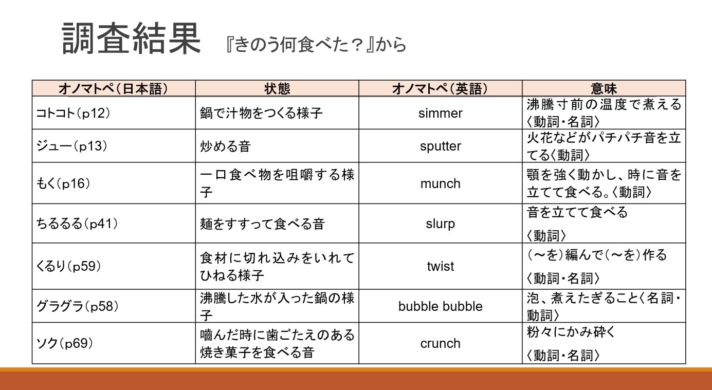 「食に関するオノマトペは日本語と英語でどのように違うのか?」