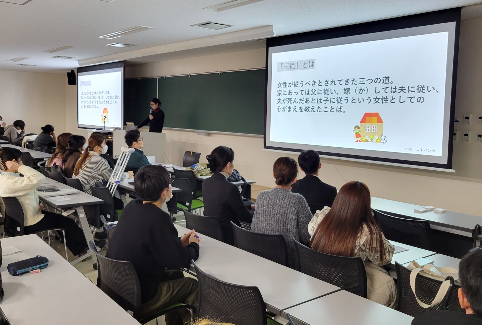 日本文化学科では、2年生必修科目として前期に開講されている「アカデミック・ライティング」において、3年生から本格的にスタートする卒業論文を書くためのレッスンとして、学術論文のテクニック、先行研究の調べ方・引用方法、テーマの決定方法、分析方法などを、学科ライティングセンターによるサポートも受けながら学んでいきます。そして、夏休みの課題として、日本文化学科の専門領域である文学や言語学などをテーマとする論文執筆を全員に課し、各クラスごとに優秀レポートを選出し、その報告会・授賞式を後期必修科目である「ゼミナール入門」の中で行っています。