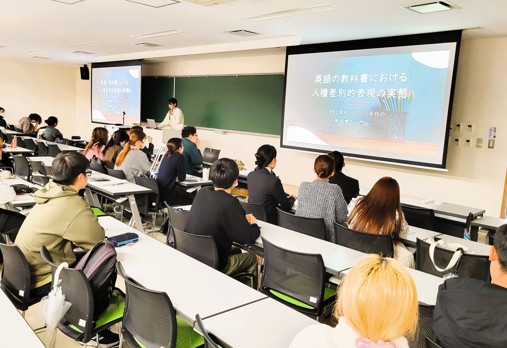 「英語の教科書にみる人種差別的表現の実態ー1980年代と2020年代の教科書を比較して」は、中学校、高校で使用されている英語科の教科書の中に登場する「イラスト」に注目し、古い教科書では、英語を使う外国人=白色人種に限定されており、アフリカ系の人やアジア系の人といった、有色人種が描かれていないのではないか、また、白色人種のイラストについても、鼻が高い、目が青い色、金髪、といった、いわゆる「ステレオタイプ」的な表現が多いのではないか、という仮説を立てて、15冊の教科書を分析するというレポートです。