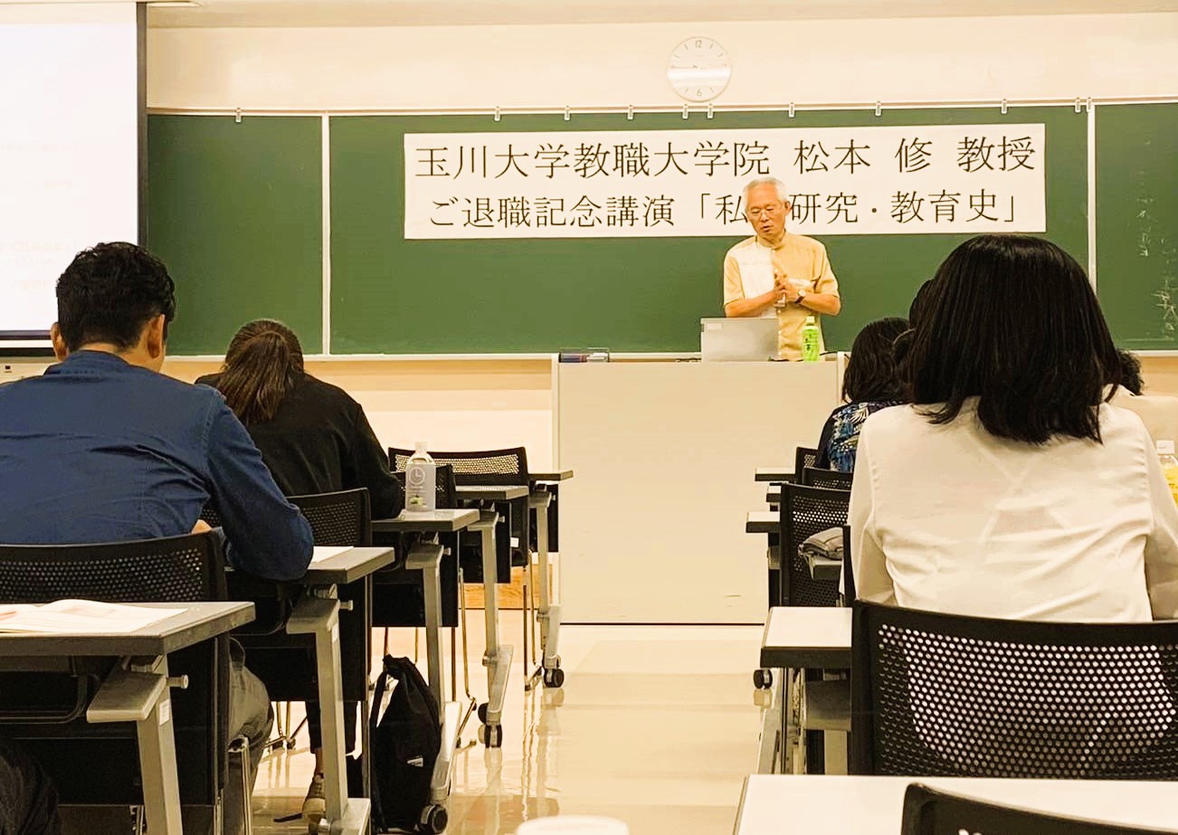研究発表の後には、学会の代表理事であり、来年3月にご退職なさる松本修先生による講演会も行われました。私たちも授業の中で学習する「読みの交流」の第一人者である松本先生のこれまでの研究史を実際に伺うことができたことは、国語科教員を志す身として、これ以上ない貴重な経験となりました。