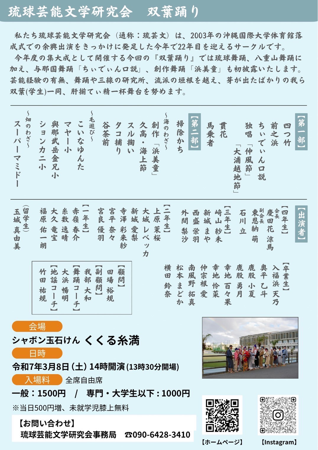 【琉球芸能文学研究会の皆さんによる自主公演「双葉踊り」、今年も開催されます!】