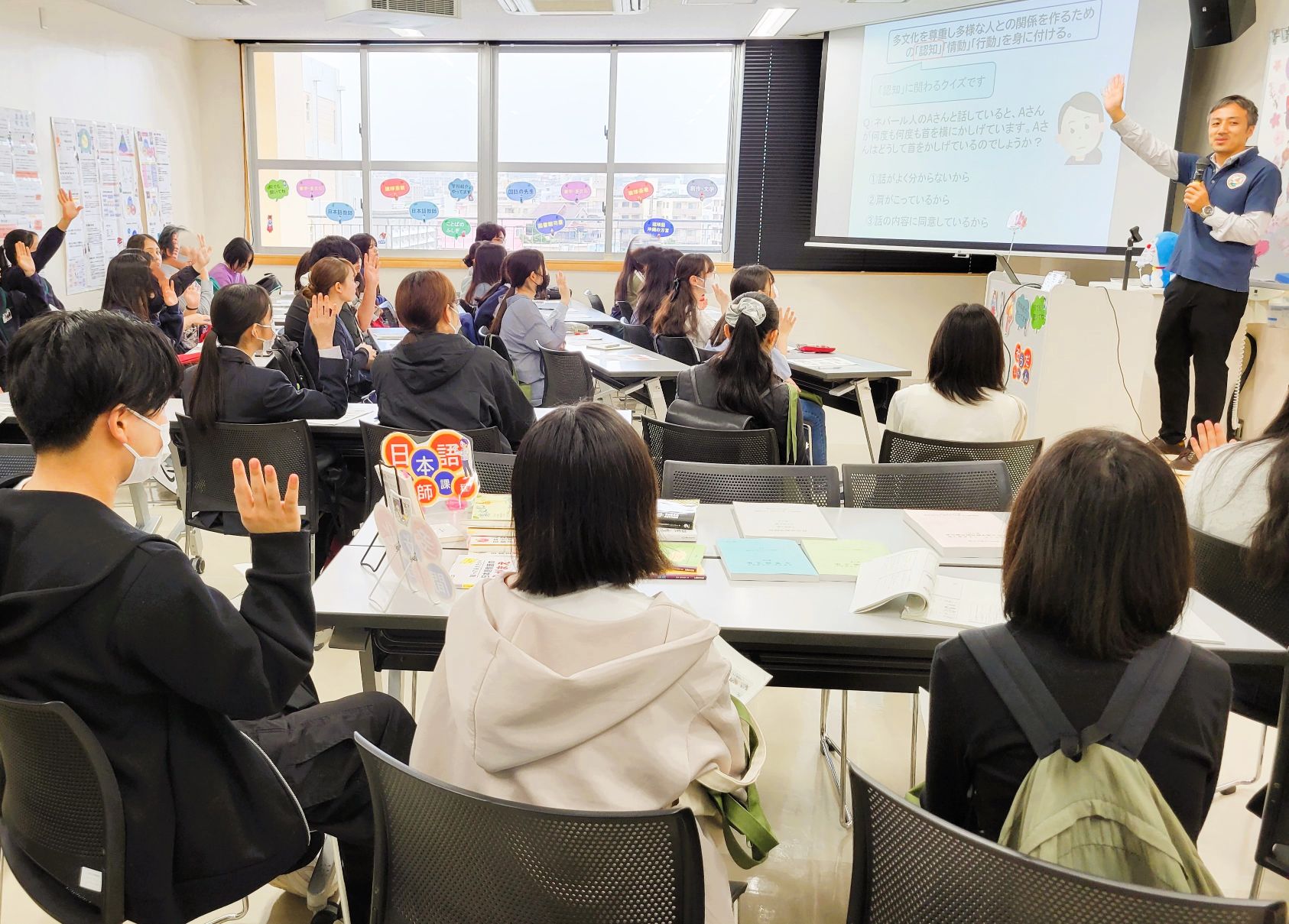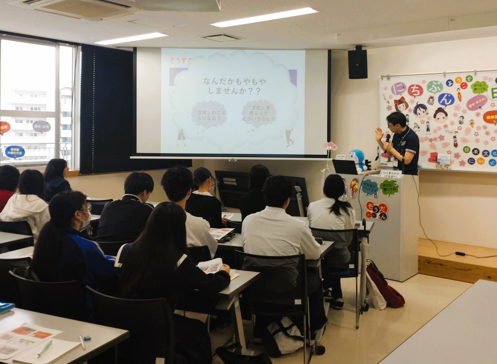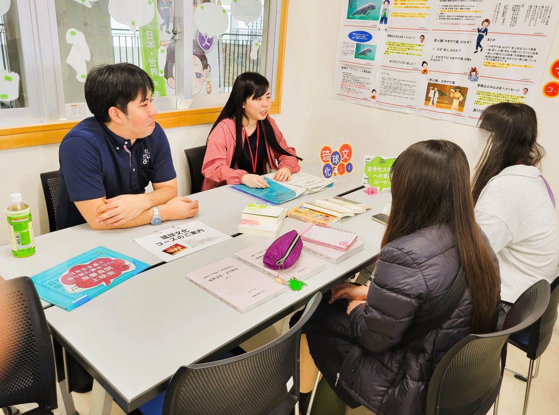 2025年3月15日、沖縄国際大学3号館503教室にて、新高校3年生・2年生向けの春のオープンキャンパスを開催し、日本文化学科の説明会場には、第一部で約40名、第二部も25名の参加がありました。