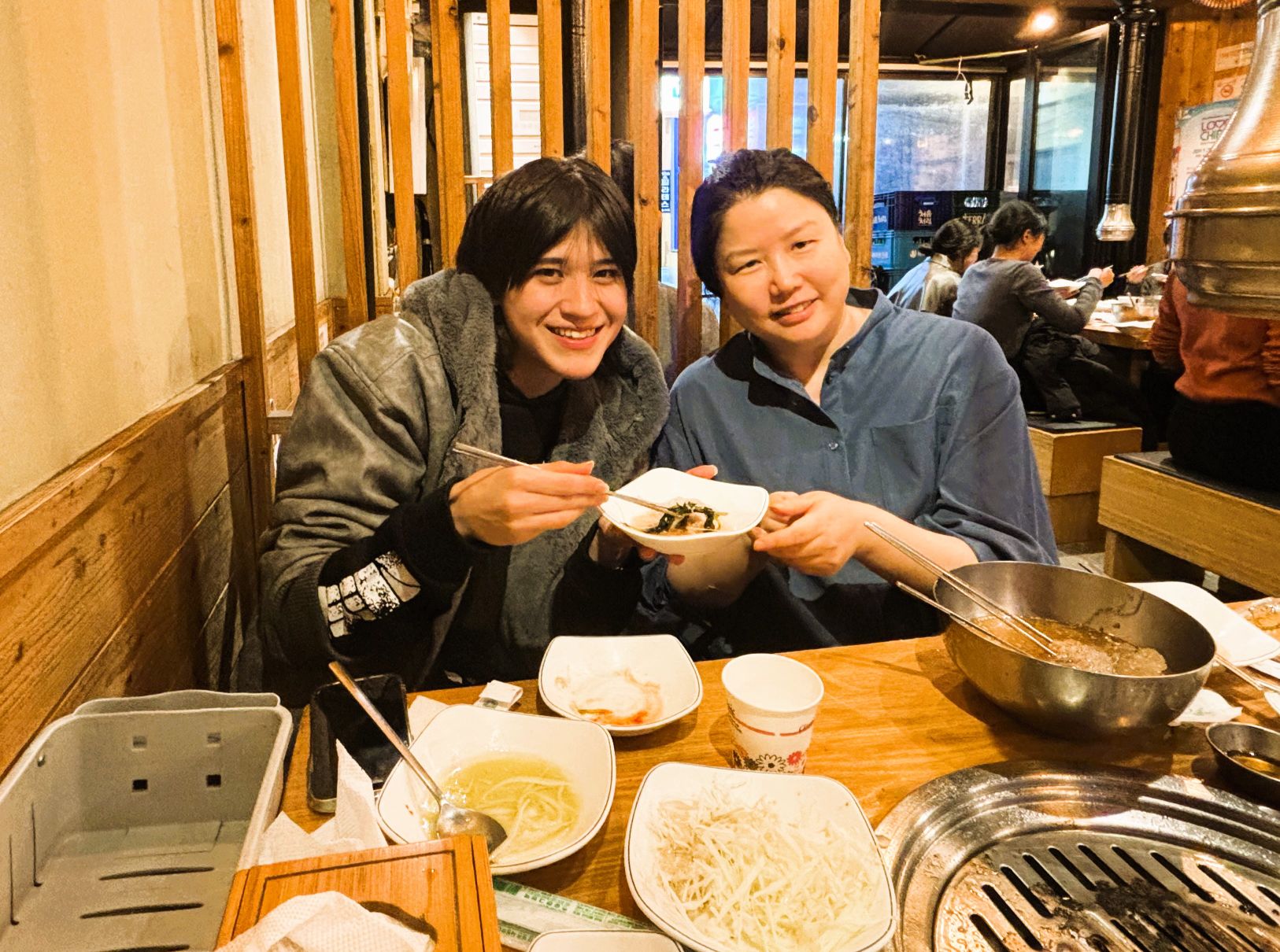 料理とは別にキムチやナムルなどの多種多様なおかずがついてくる、しかも、日本の小鉢のように量が少ないものではなく、すべて一品ほどの大きさで出されている、という点も日本や沖縄とは違う食文化のように感じました。そして、これらのおかずに関しては、現地の方たちが、ご飯にキムチやナムルなどを混ぜ合わせ、ビビンパ風にして工夫をしていたことにも驚かされた。韓国の方々は日常的にこのような工夫をしており、食に対する意識の高さも感じられました。おいしさを追求していることの現れなのではないかと思います。