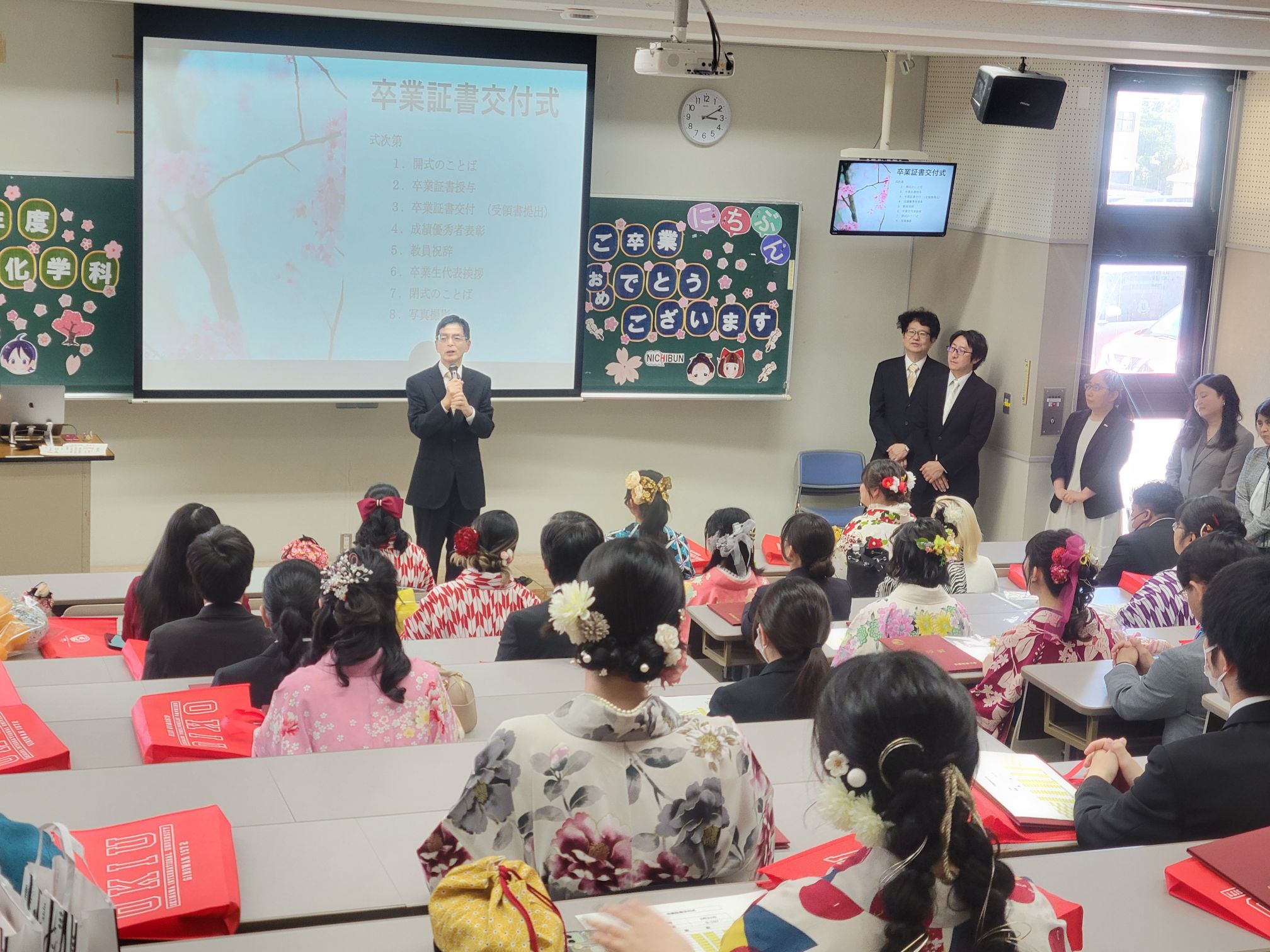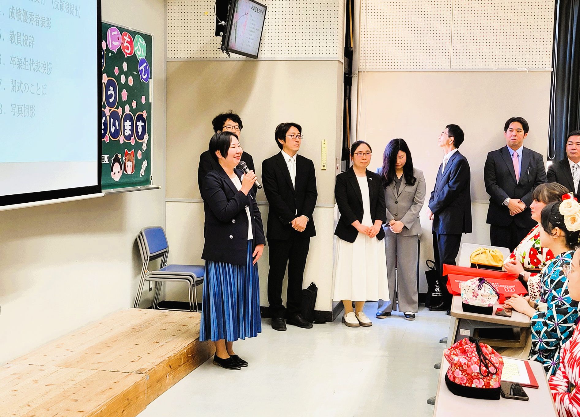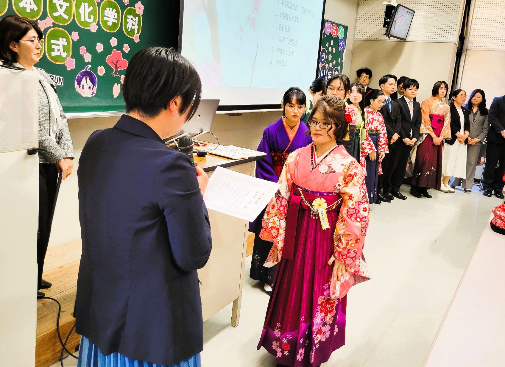 この授与式は日本文化学科の恒例行事で、先生たちの手作りの式です。