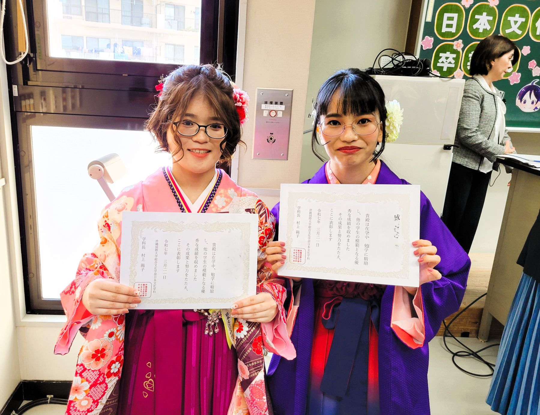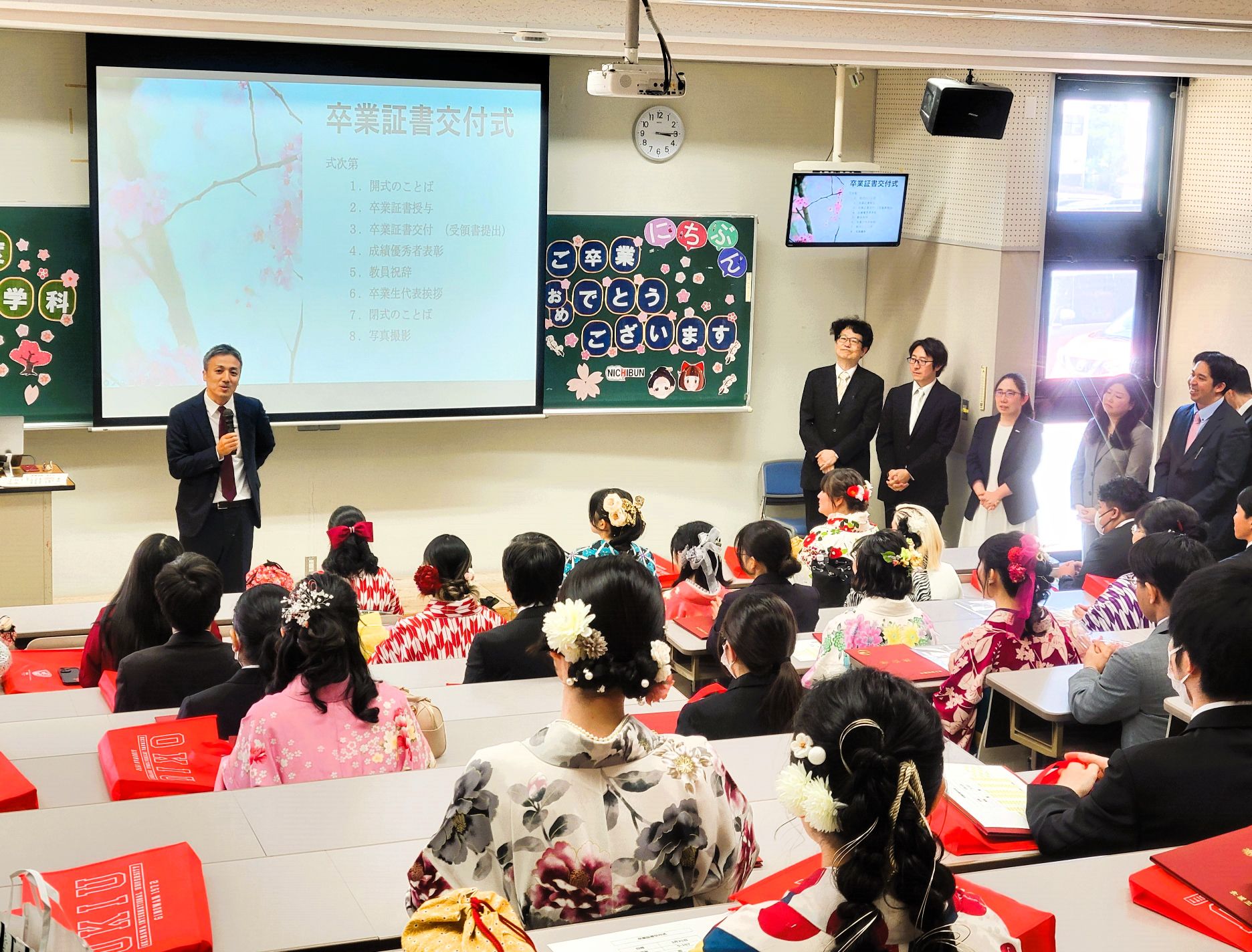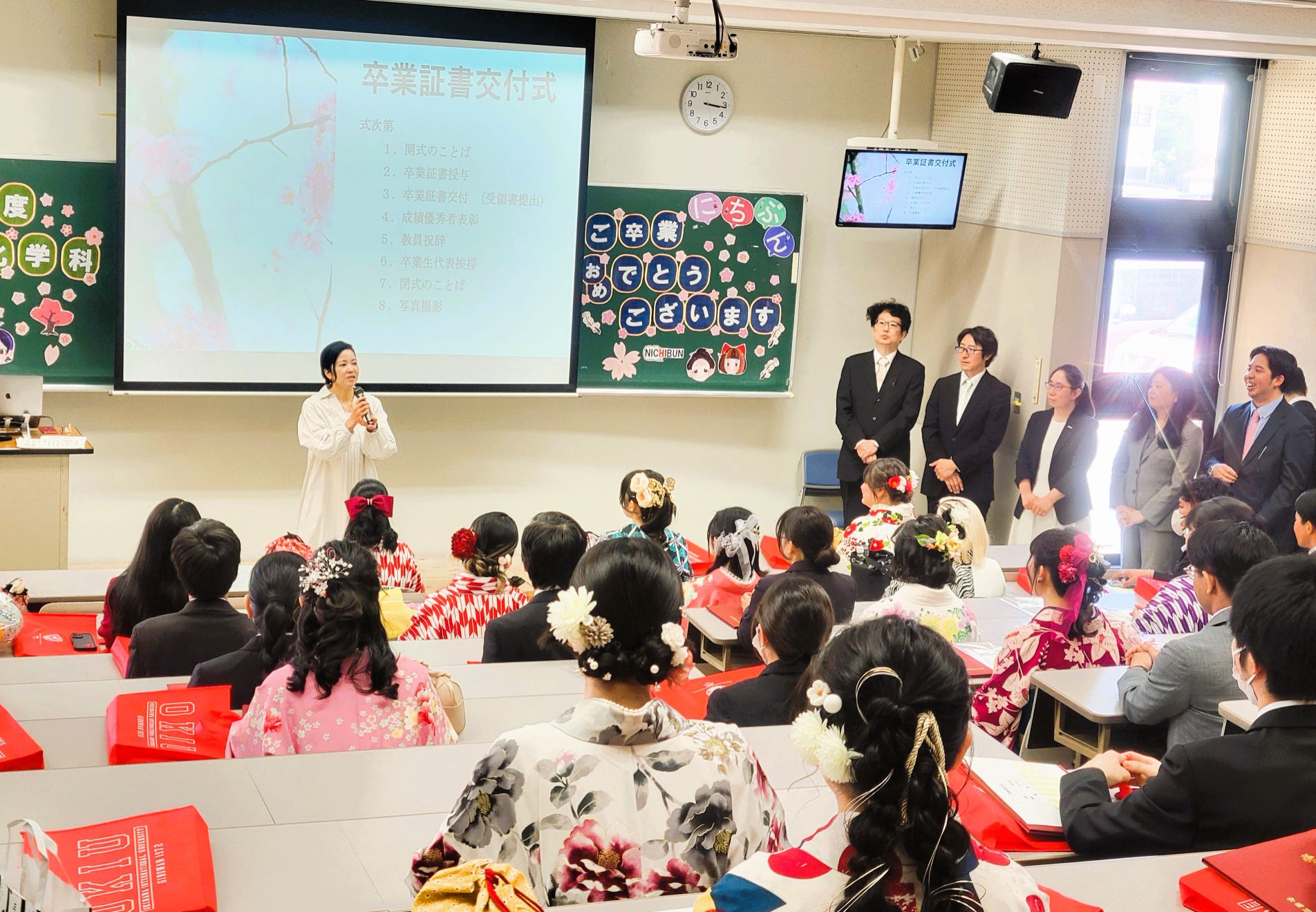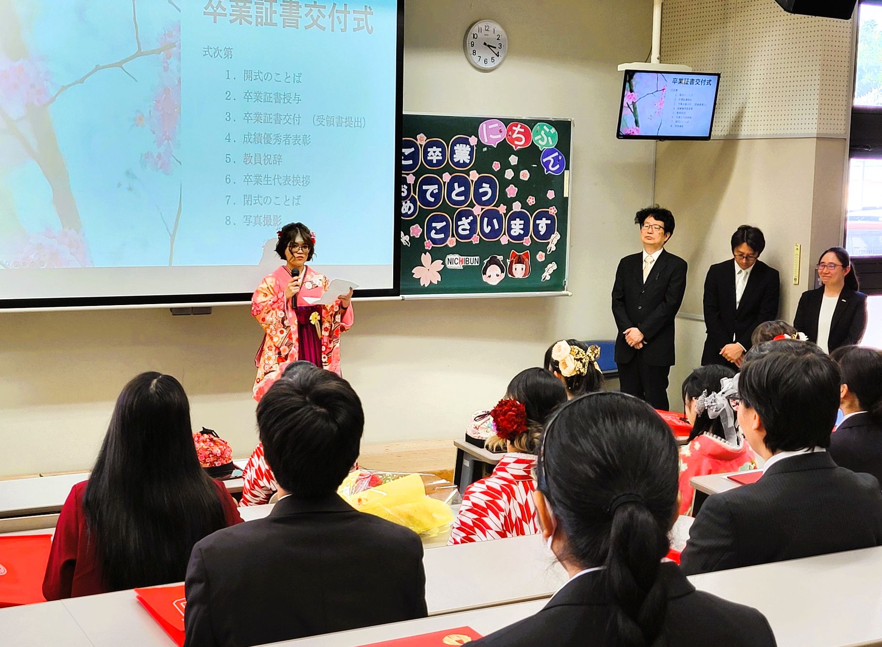 この授与式は日本文化学科の恒例行事で、先生たちの手作りの式です。