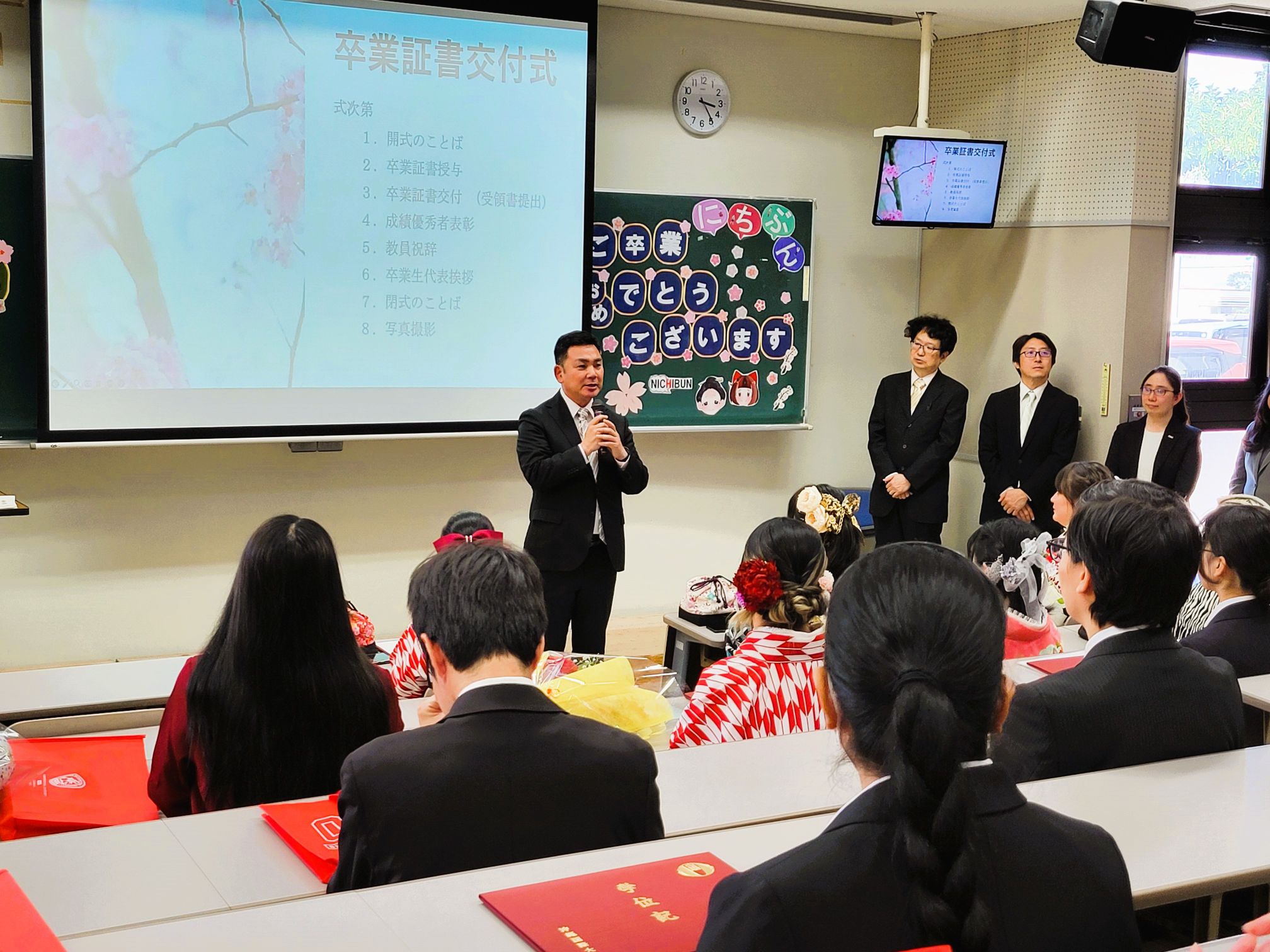 卒業証書を1人1人手渡し、学科の先生1人1人からの贈る言葉が寄せられました。