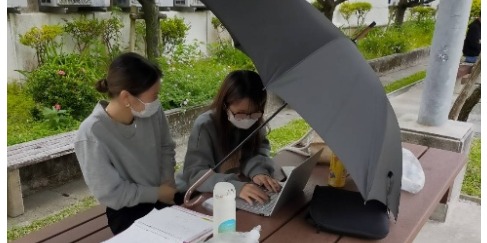 1つ目は、授業です。高校までは、正直、授業=強制的に受けるもの、という印象がありましたが、大学に入って、授業=自分の好きを深められるもの、に変化しました。そもそも大学は、自分で選ぶ“選択科目”や“共通科目”と、学科の“必修科目”を組み合わせて、自分で時間割りを作ります。高校までの授業と違い、履修に際して自由度が高い上に、自分の興味ある分野を学ぶことができるという利点があります。特に、日本文化学科(日文)が設定する科目は、日本や沖縄の文化、文学、言語等に興味ある人であればとても面白い内容ですし、同じ趣味・嗜好を持つ友人も沢山できます。その中でも、普段沖縄の人が話している言葉(「~だはず」「してからに、」など)について、その成り立ちや理論を学ぶ講義が印象に残っています。私は、友達とこの授業にドはまりして、「明日、雨だはずね。」「あ!今の講義で勉強したやつ!」という、他の学科の子が聞いたら引かれそうな会話をしていた時期があったくらいです。今思えば、友人とのなにげない会話でしたが、それも思い出だなと感じています。