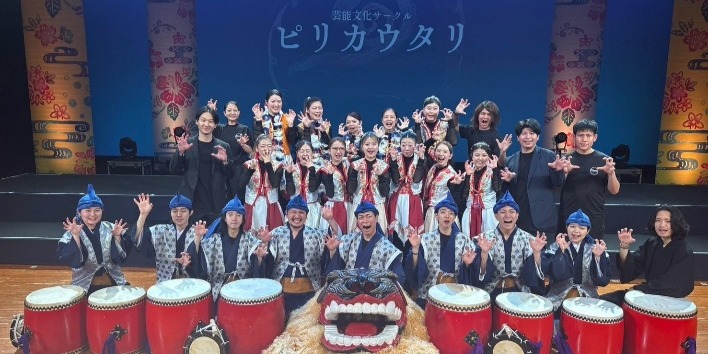 3つ目は、サークルです。私は、芸能文化サークル「ピリカウタリ」というサークルに所属していました。エイサー、バレエ、琉舞、手踊り、ダンス、獅子舞など様々な要素を混ぜて、自分達で舞台を作る活動をしていました。仲間達と切磋琢磨して何かを作りあげ、それをお客さんに提供するという経験はなかなかできません。部活動と似ていて、悔しい、きついと思う瞬間もありましたが、その倍くらい楽しい思い出があります。サークルなので、打ち上げや誕生日会、ハロウィンパーティーなど学生らしいイベント事も多くありました。また、私達のサークルは、私の同級生が立ち上げたものです。最初数えられるくらいしかいなかったメンバーが、今では20人にもなりました。卒業する頃には誇らしい気持ちでいっぱいで、社会人になっても会いたいなと思える仲間達と出会うことができて幸せだなと感じています。