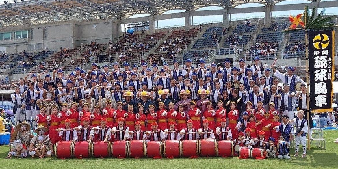 こんにちは!私たちは、沖縄国際大学、伝統エイサーサークルの、琉球風車(りゅうきゅうかじまやー)です。琉球風車は、2001年に発足し今年で24年目を迎えます。「学び、楽しみ、伝える」をモットーに、沖縄の伝統芸能である「エイサー」を日々練習し、県内外にとどまらずハワイやグアム、台湾などのイベントでも演舞をしています。