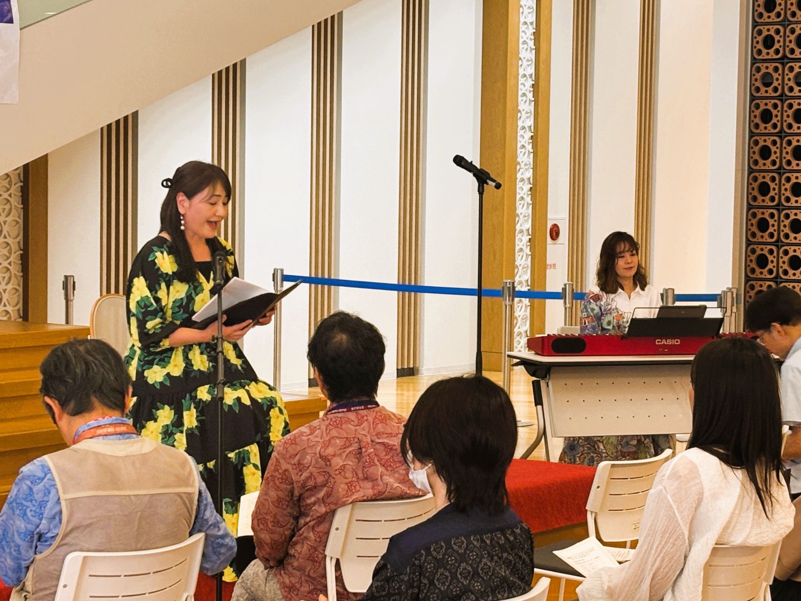 また、「沖縄可否の会」の皆さまによる、ピアノ演奏と朗読も行われ、来館した方が足を止めて、素敵な朗読に耳を傾けている様子も見られました。