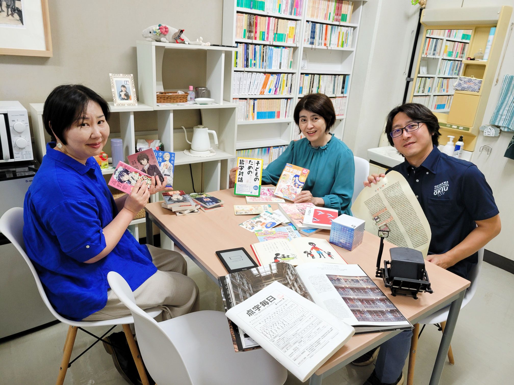 「日本文化コース」は2026年4月から「言語情報文化コース」として新たに生まれ変わり、コースの内容もますますパワーアップします。受験生向けに、2年生の仲よし3人組が、コース担当の3人の先生(桃原先生、村上先生、名城先生)の研究室に行って取材をしてきてくれましたので、こちらでレポートを紹介します。