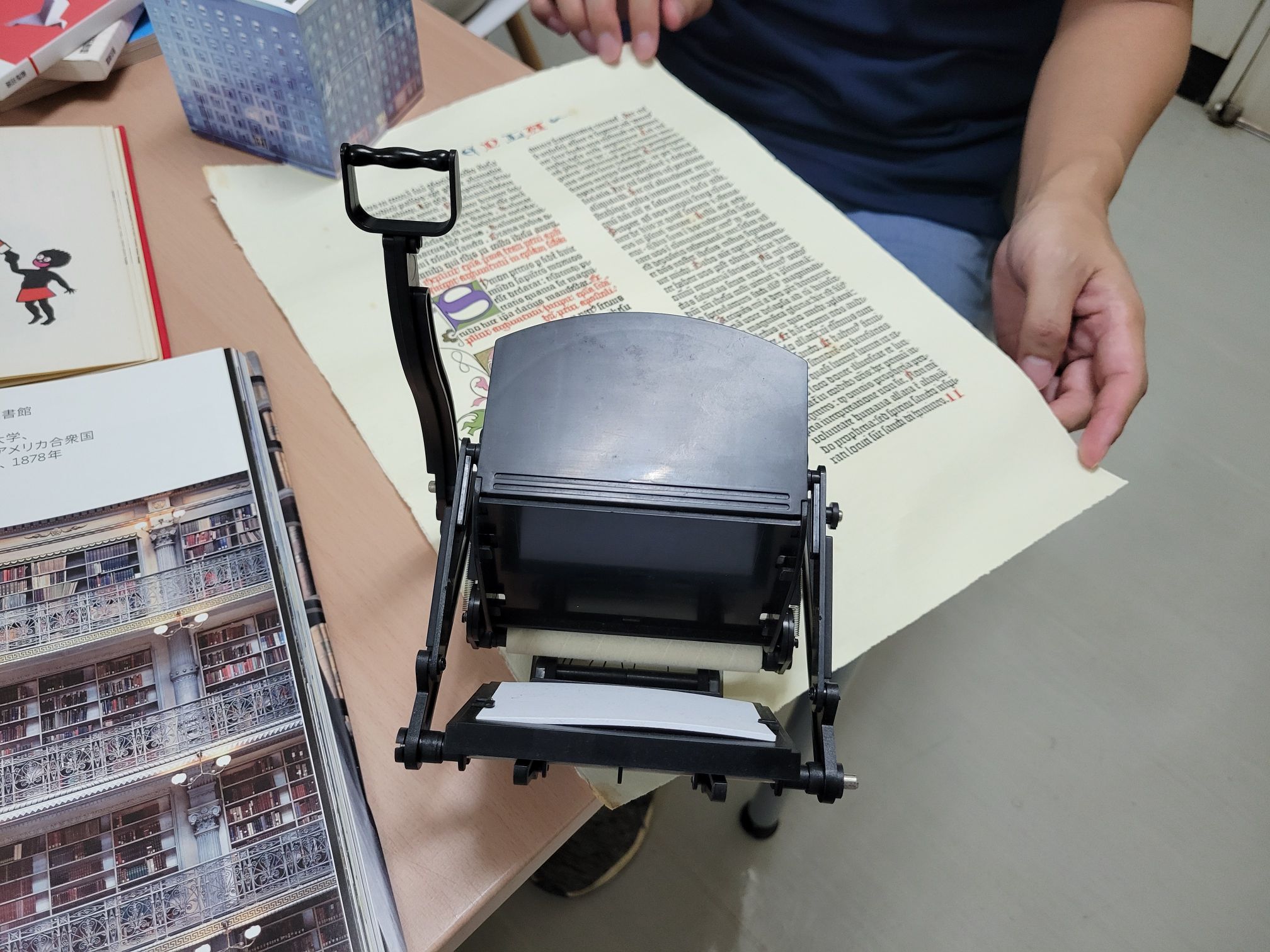 名城先生 県内で司書資格を取得できるのは沖縄国際大学だけです。その中でも日本文化学科には、図書館情報学を専門とした教員が私を含めて2名おり、より専門的に学ぶことができます。図書館のことを詳しく学びたい人はぜひ日文に来てください! また、私の専門が図書館情報学だけでなく、出版文化史ということもあり、図書館だけでなく出版文化や書物自体について興味がある人も待っています! (下の写真は活版印刷の機械なんですよ。)