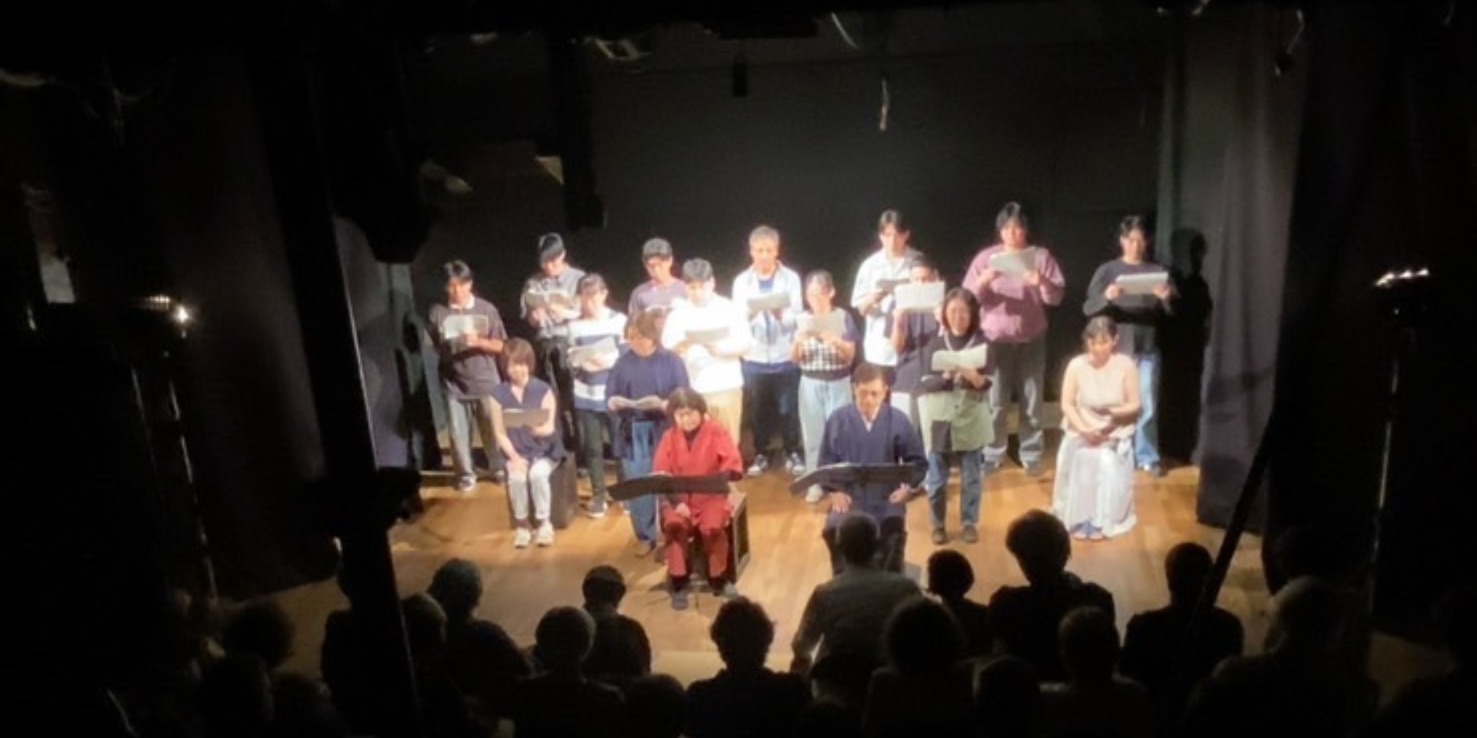 「にんげんだから」は、沖縄戦や沖縄の今をテーマにした大城貞俊さんの脚本ですです。上江洲朝男さんと高宮城六江さんが朗読する朗読劇でしたが、多くの登場人物が出てくる所に日文の学生も参加しました。大学時代を北海道で過ごした田場先生の同級生も一緒に群読に参加しました。