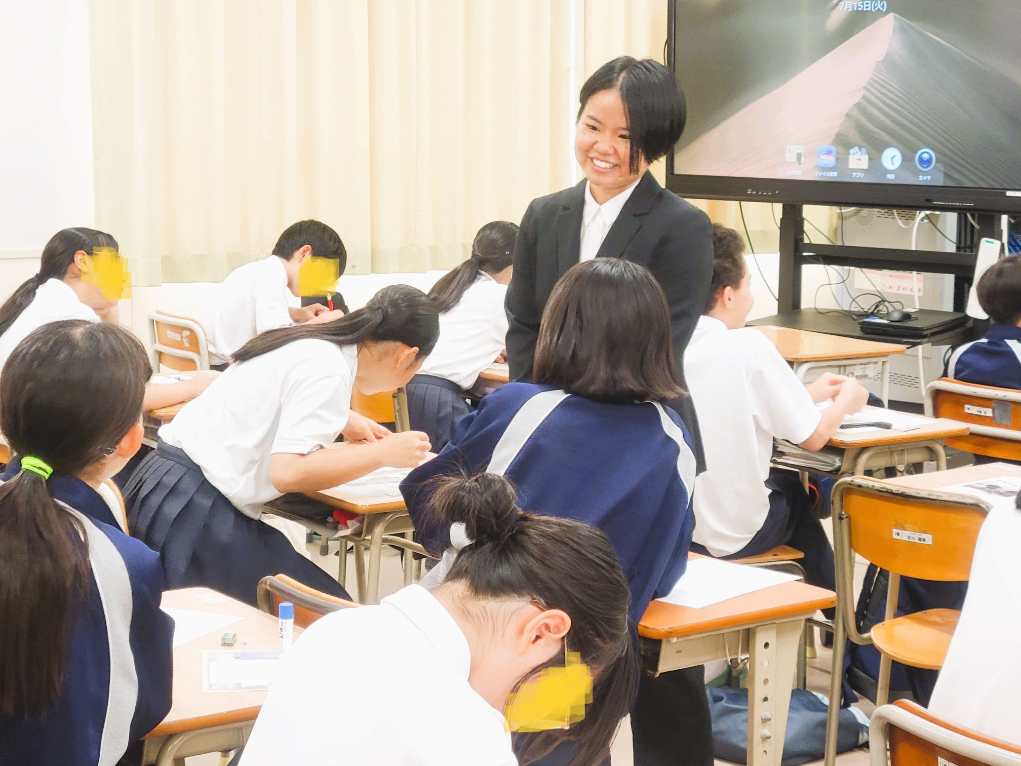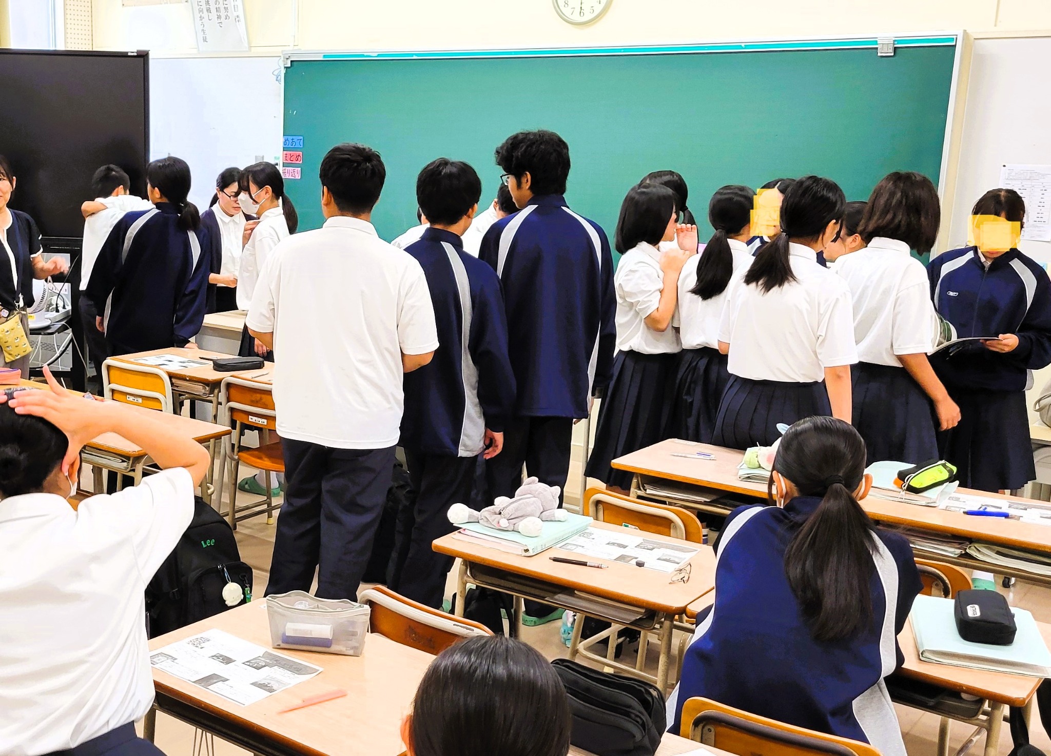 実習の舞台は中学校1年生の国語の授業。もうすぐ始まる、中学校初めての夏休みに向けて、受講生2名ずつがペアになって、「美しいもの」「もやもや」「秘密」といったテーマで、1時間の授業を担当しました。