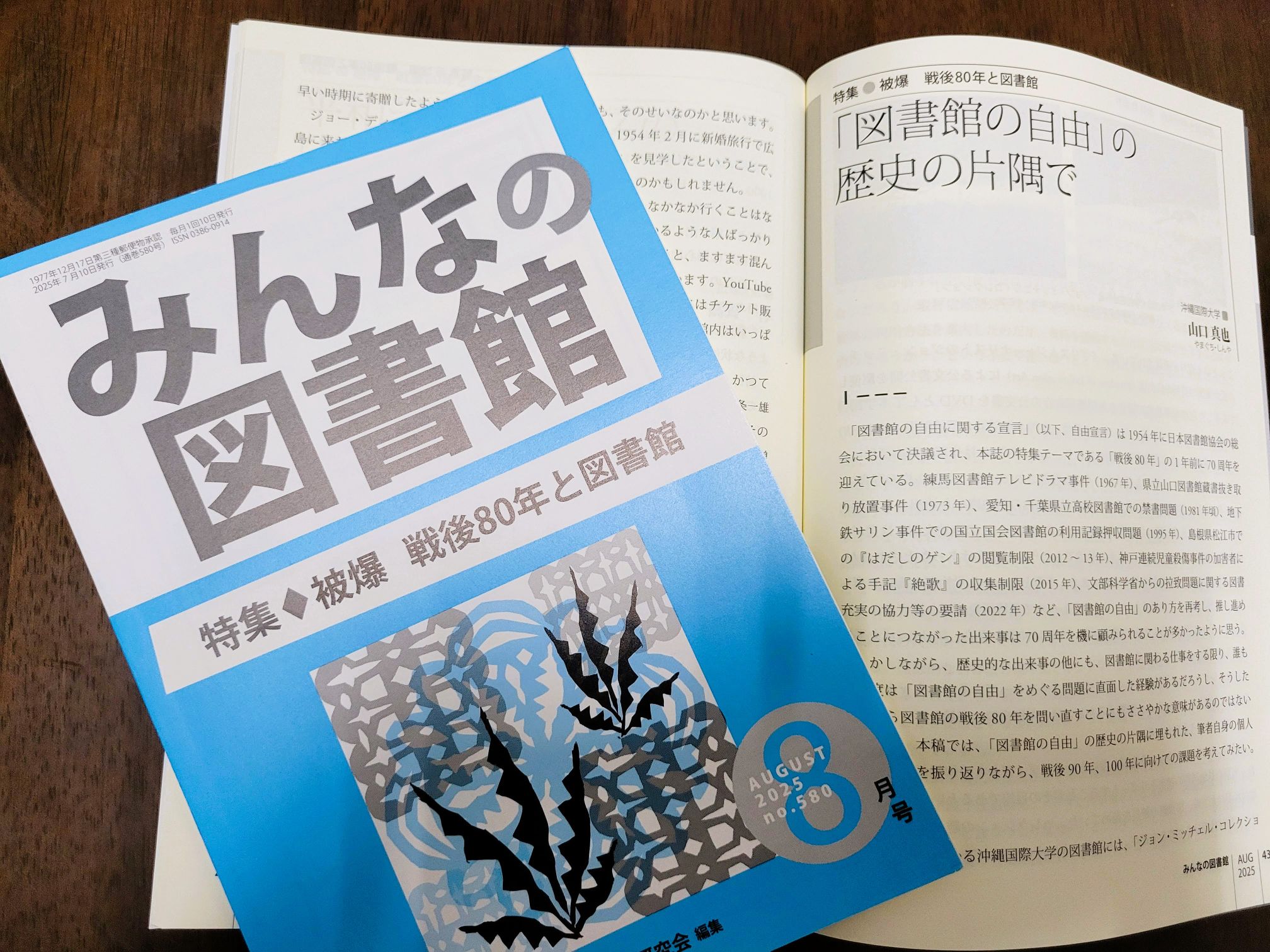 【図書館学担当の山口先生の「戦後80年」をテーマとする論考が『みんなの図書館』に掲載されました】