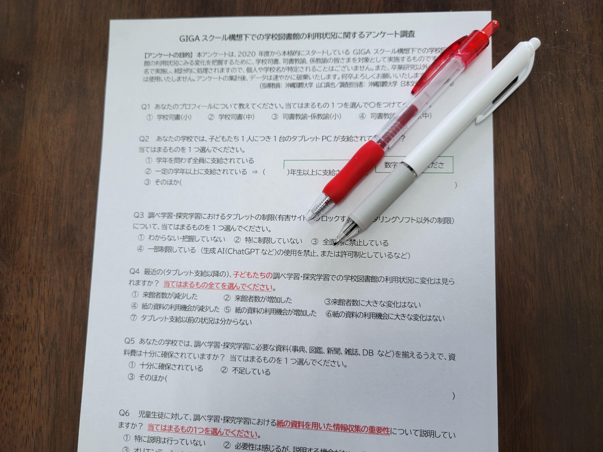 この日の報告とは直接関係はありませんが、この日の参加者の皆様には、山口先生のゼミ(図書館情報学ゼミ)で取り組んでいる、GIGAスクール構想がスタートして以降の学校図書館の利用状況の変化について、タブレットPCでの調べ物が増えて、紙の本を使っての学習が減っているのではないか?、という仮説を検証するためのアンケート調査にも追加でこたえていただきました。