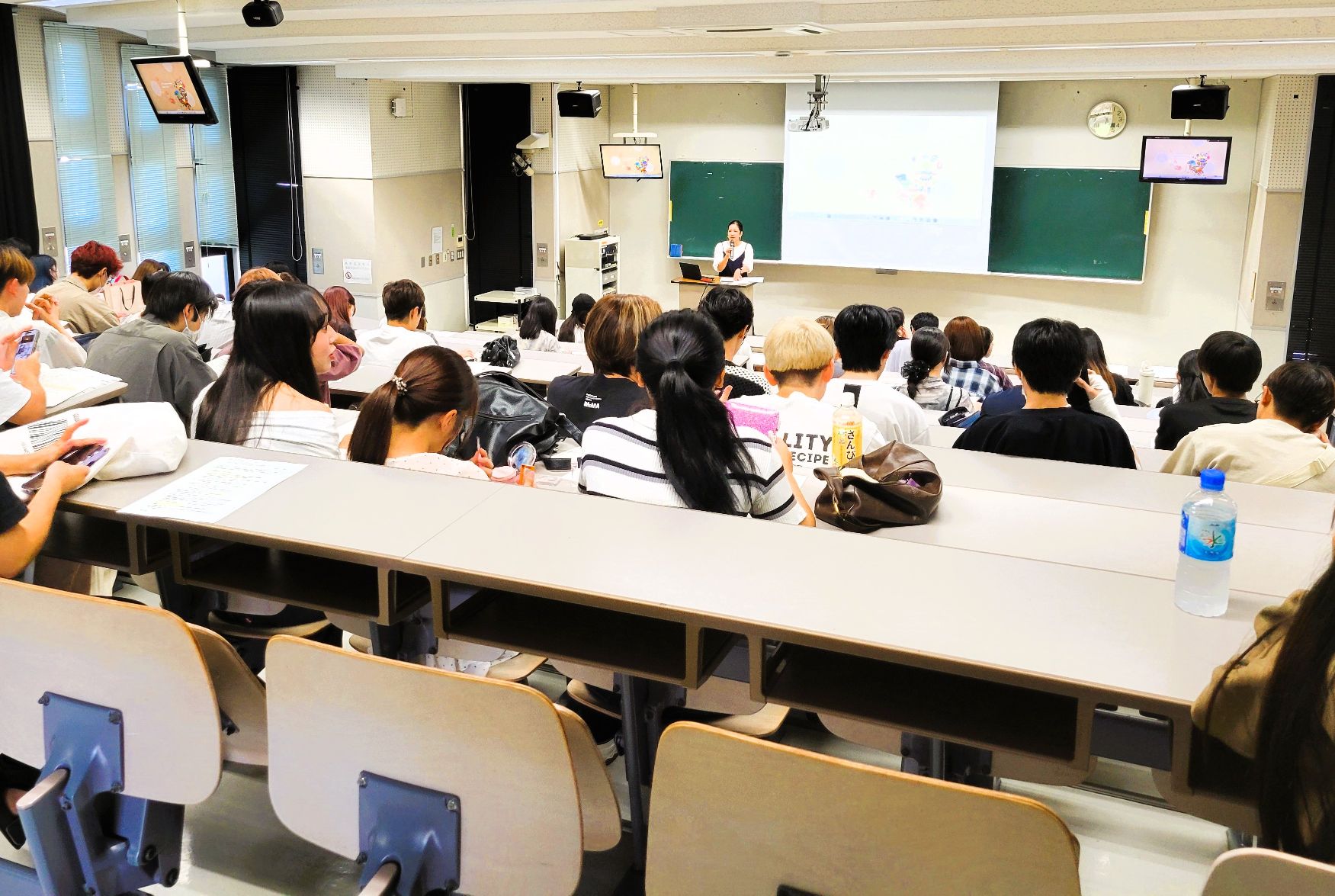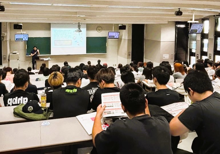 この日は、1・2年生の後期オリエンテーションということで、久しぶりに学年全員が教室に集まって、1年生会場は山口先生、2年生会場は下地先生がそれぞれ担当して、後期の授業の登録法や、クラス分けの注意点、各学年の目標、留学制度などを説明しました。