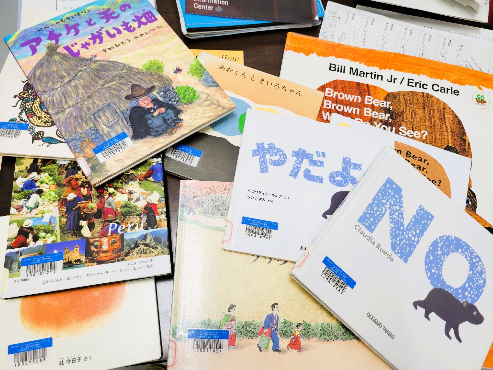 世界のおはなし会で人気が高いエリックカールの絵本や、色や動物など、簡単な日本語で物語が進む絵本、話者の方の出身国である韓国やペルーで有名な絵本の日本語訳版なども選んでみました。