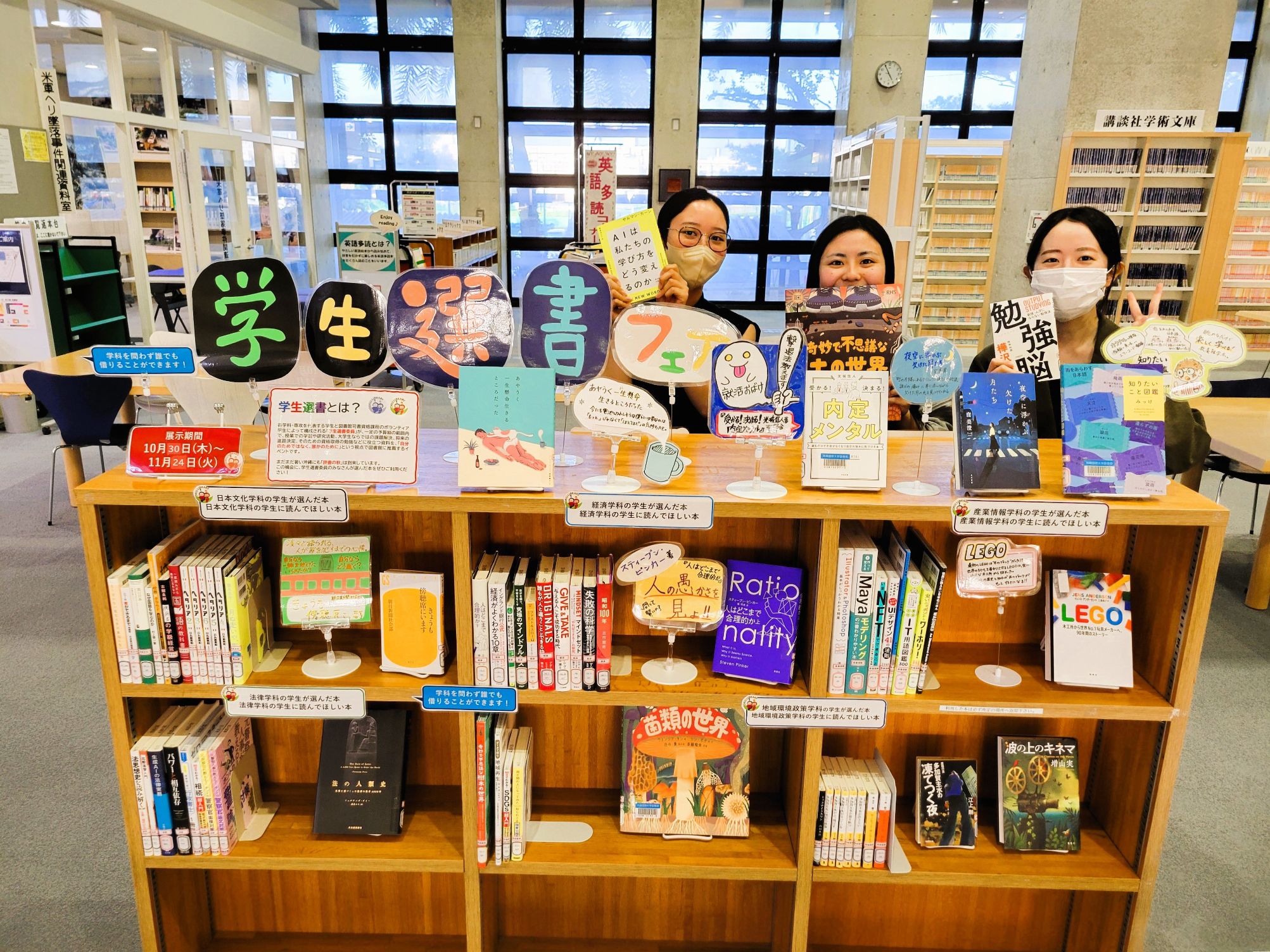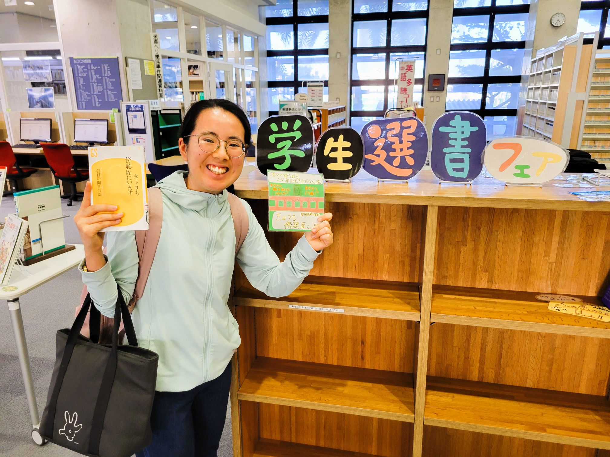 ここ数年は、せっかくのイベントなので、ただ本を推薦してもらうだけでなく、図書館情報学ゼミのメンバーや司書課程の学生のみなさんにもボランティアで参加してもらい、「学生選書フェア」と題するコーナーづくりを行ってもらっています。
