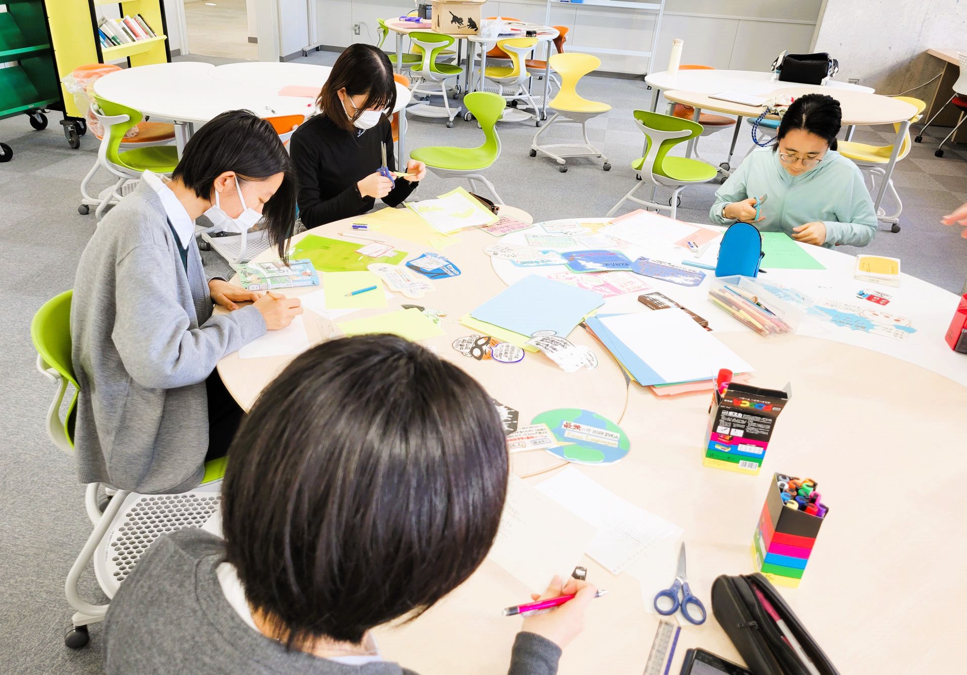 この日の活動では、展示コーナーのレイアウトを考えたり、おすすめ本のPOPを作成したり、効果的な展示レイアウトを考えたり、展示パネルをつくったり。たっぷり3時間。作業はたくさんあって大変でしたが、自分が選んだ本が、装備を終えて手元に届いて、棚に並んだ様子を見ると、書店で本に出合うのとはまた違う感動を味わうことができたようです。