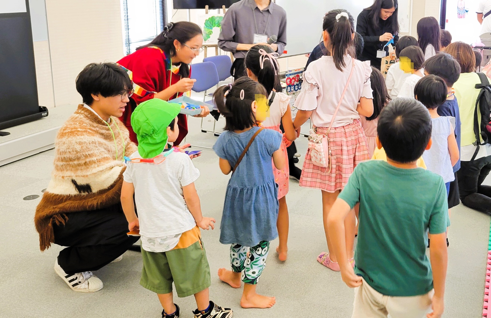 おはなし会のエンディングでは、たくさん言葉を教えてくれたバネッサさんとよしあきさんに、「ありがとう」をスペイン語で教えてもらいました。「ありがとう」は「グラシアス」と言うそうです。みんなで「グラシアス」と伝えて、おはなし会を終わり、そのあとは、ジャンケン大会で残ったメダルや、絵本に出てきた動物たちをかたどった折り紙を子どもたちに、お二人からプレゼントしてもらいました。たくさんの子どもたちがバネッサさん、よしあきさんのところに来てくれて折り紙を受け取りながら「グラシアス」と声をかけてくれました。