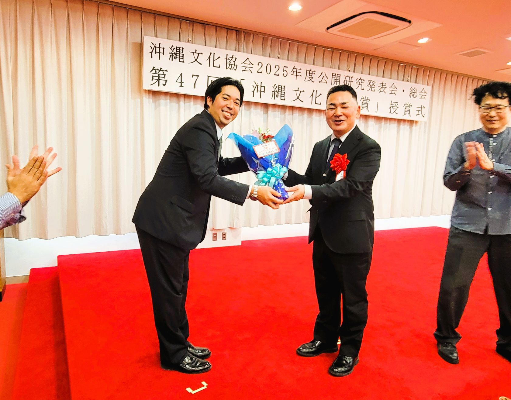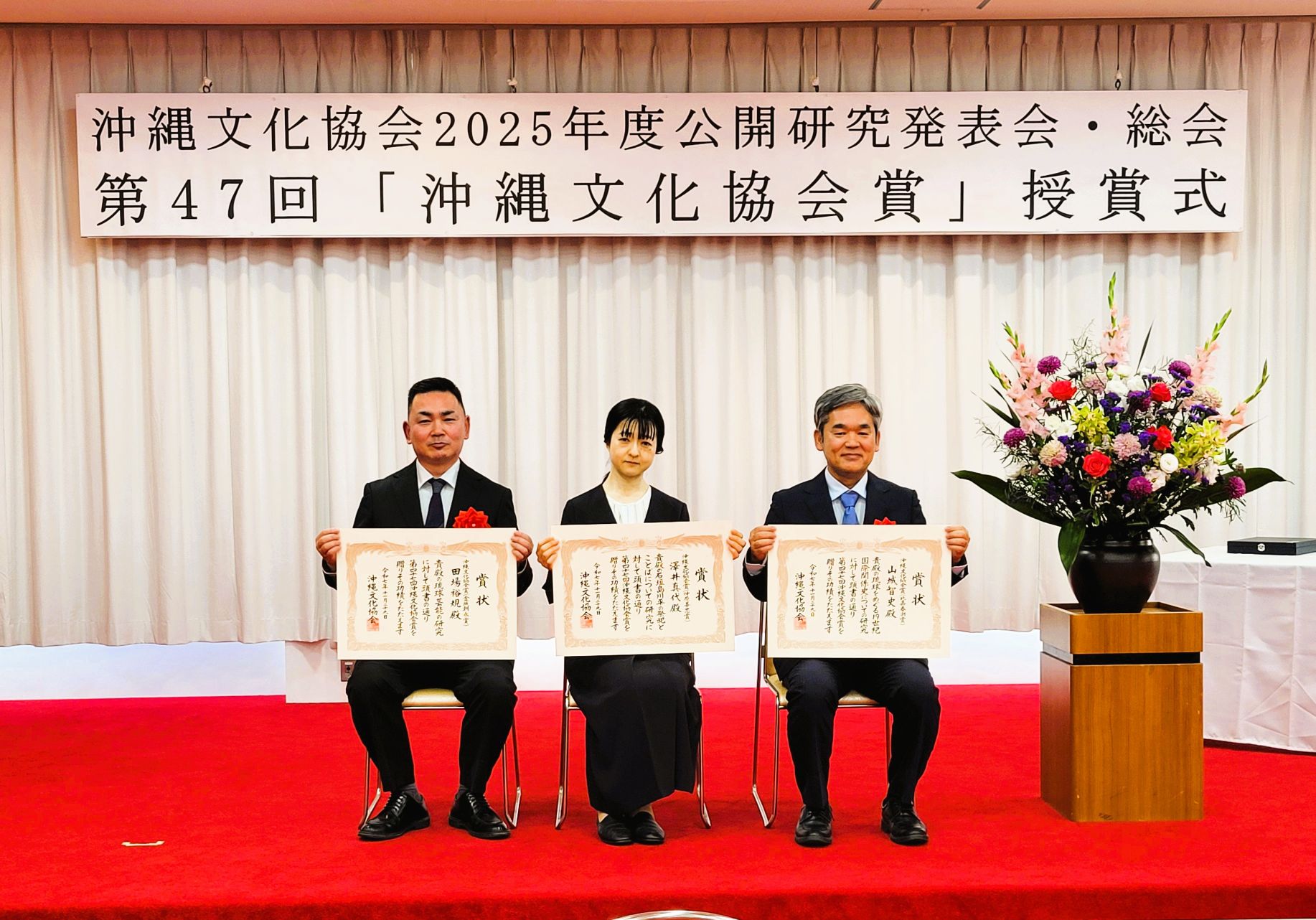 日本文化学科で国語科教職課程の授業や卒論指導を担当しつつ、図書館長も兼務されている田場裕規先生が、沖縄文化協会が主催する「沖縄文化協会賞・金城朝永賞」を受賞され、2025年11月30日にその授賞式が開催されました。
