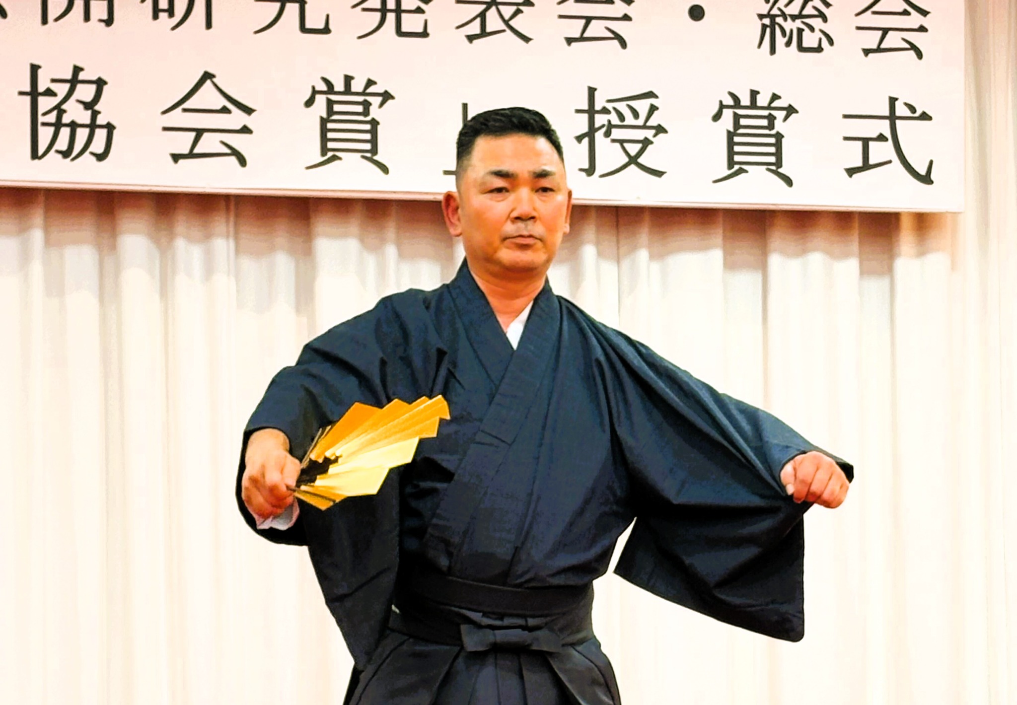 【沖縄文化協会賞の祝賀会が開催され、金城朝永賞を受賞した田場先生が演舞を披露しました!】