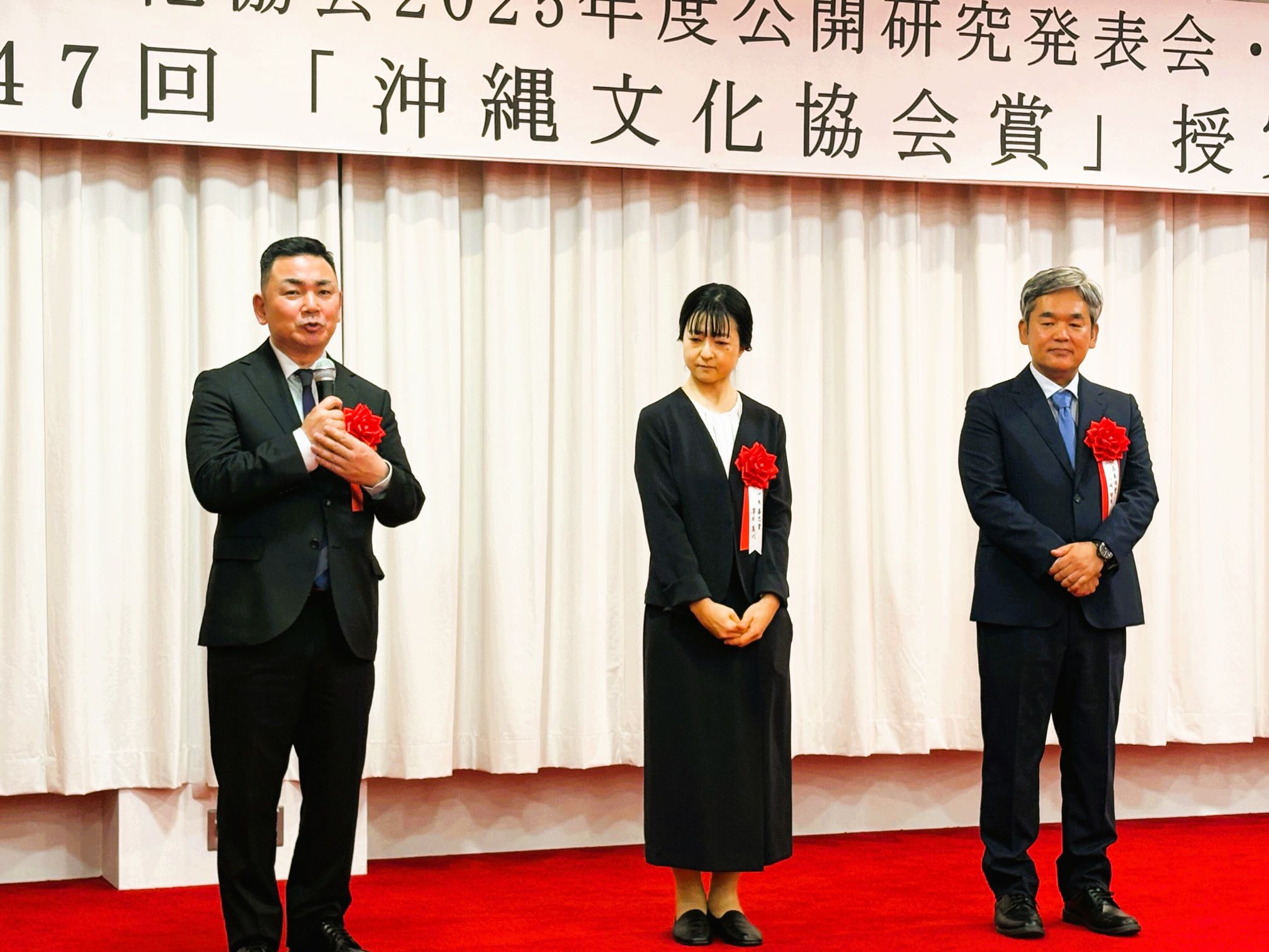 日本文化学科で国語科教職課程の授業や卒論指導を担当しつつ、図書館長も兼務されている田場裕規先生が、沖縄文化協会が主催する「沖縄文化協会賞・金城朝永賞」を受賞され、2025年11月30日にその授賞式が開催されました。
