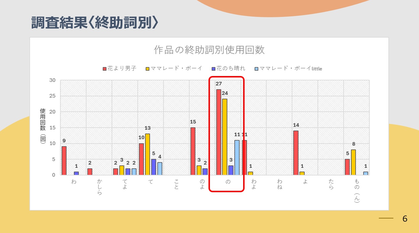 ●「少女マンガからみる女ことばの今―1990 年代の作品と 2010 年代の作品の終助詞を比較してー」