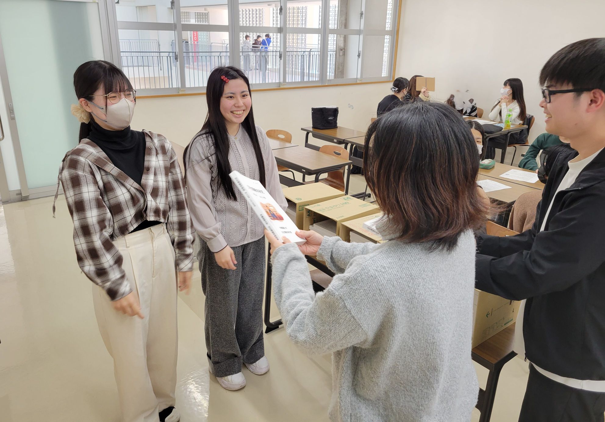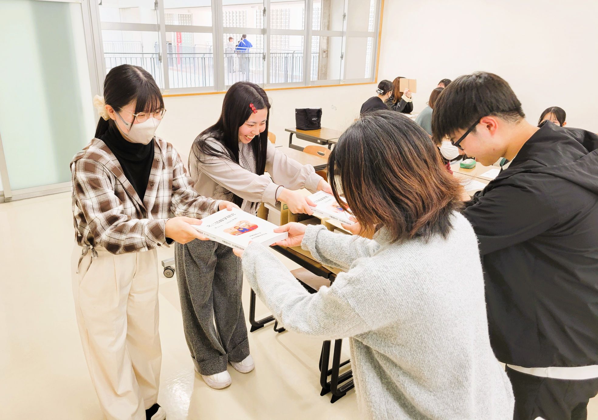 印刷作業と丁合作業は4年生たちが学内の印刷室を使って行いましたが、表紙印刷と製本は専門の業者さんにお願いしているので、完成した卒論集を見るのはこの日が初めてになります。立派な冊子に仕上がった卒論集をみて、4年生からは喜びの声が上がり、1年間の頑張りをお互いにたたえ合うほほえましい様子が見られました。
