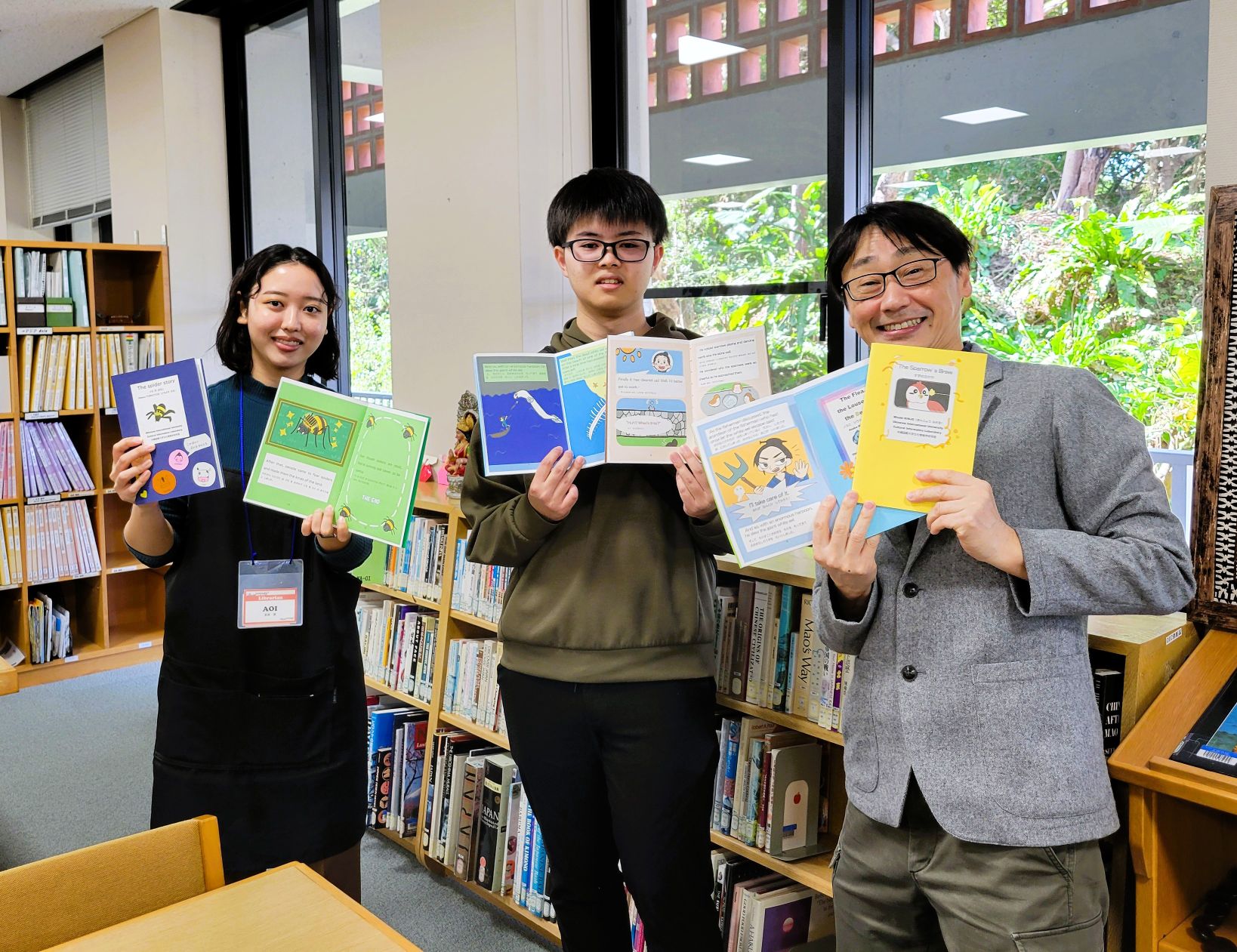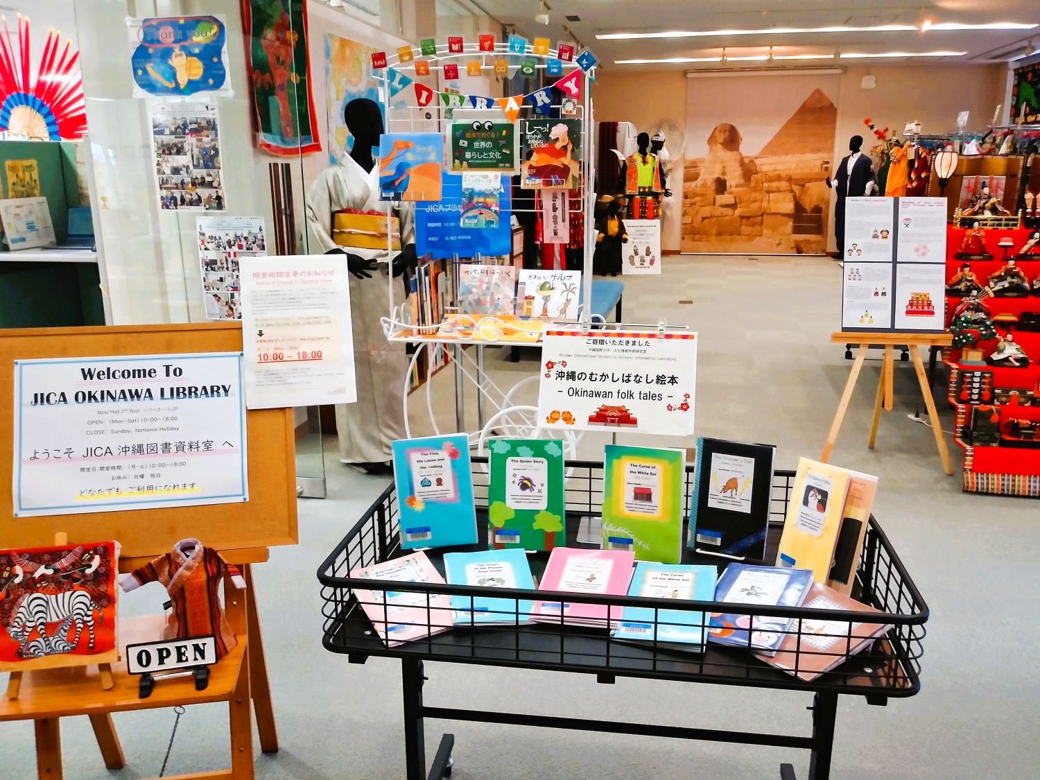 【JICA沖縄図書資料室に沖縄昔話の手作り英語絵本の特設コーナーを作っていただきました!】