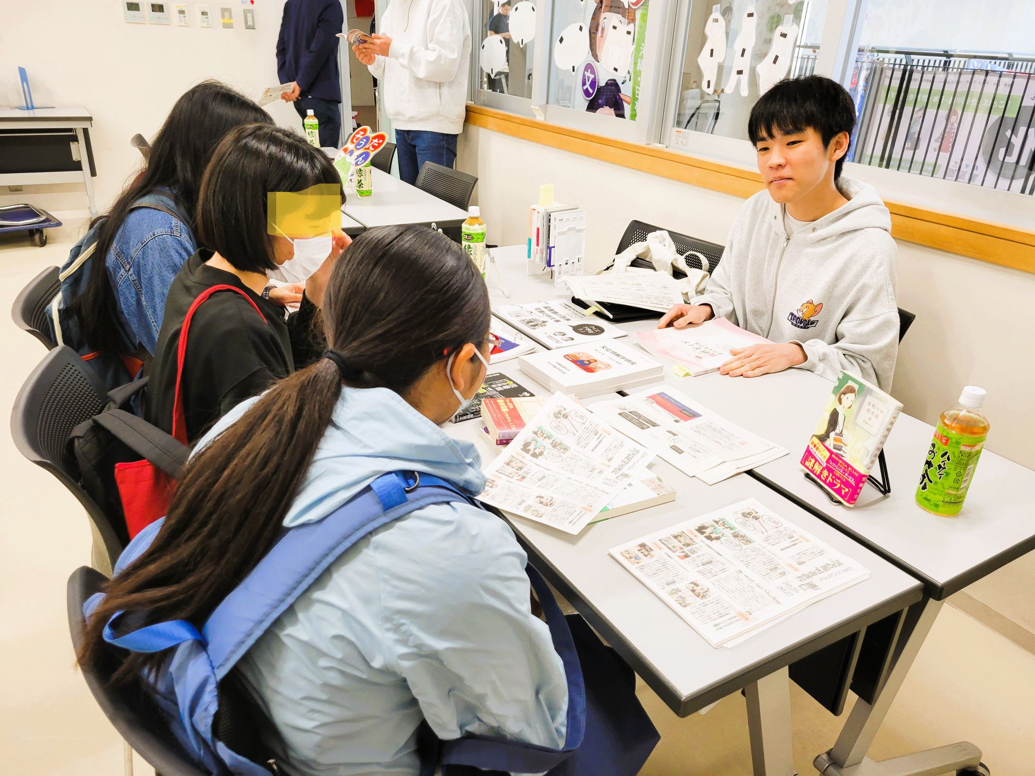 毎回、ブースへの来場者が多い、図書館司書課程でも「図書館司書課程通信2026-2027」というチラシを作って配布しました。採用試験現役合格者速報、小中学校でのブックトークの実習の様子、卒業研究の取り組みなど、学科パンフレットには掲載できない情報が満載です。
