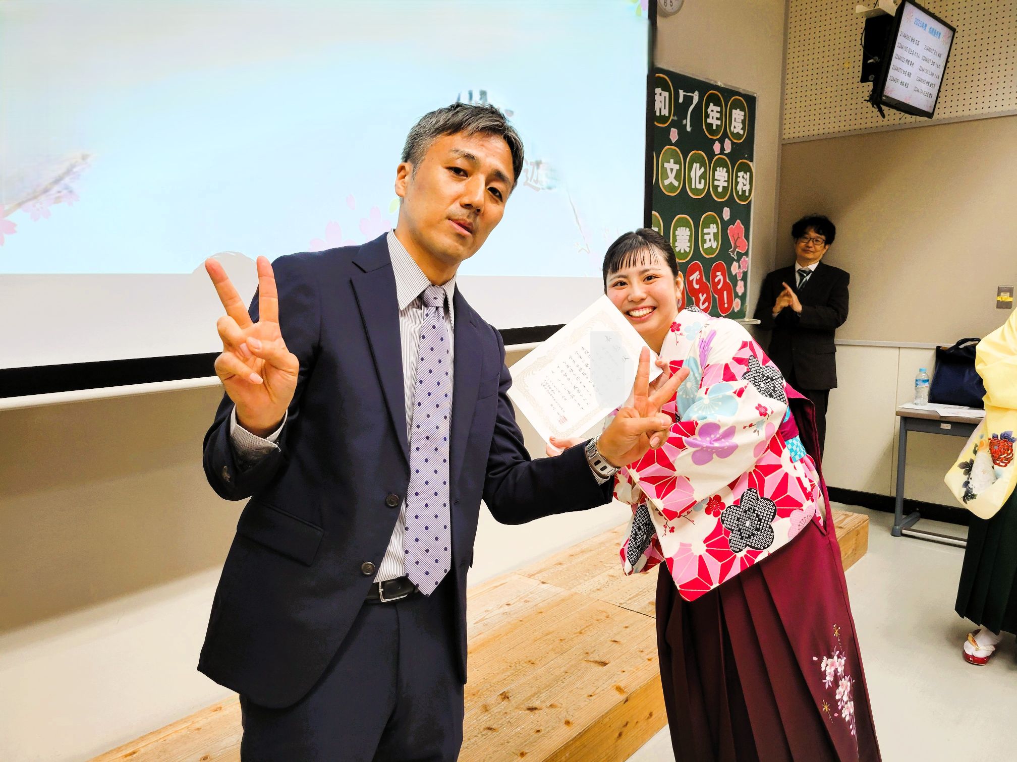 卒業生のみなさん、日本文化学科の4年間の学びを誇りに、4月からそれぞれの道で頑張っていきましょう。