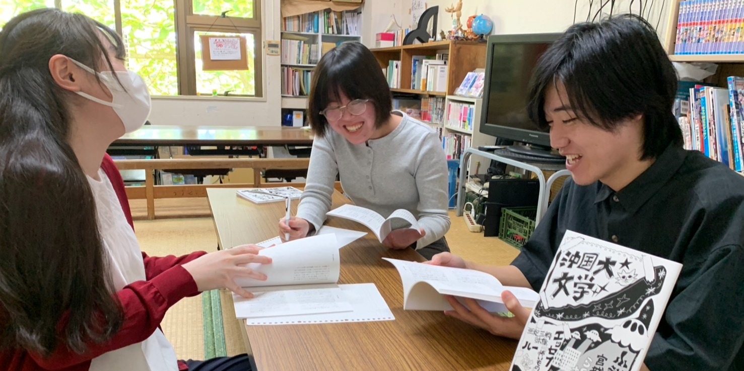 このサークルの魅力として、文芸誌の制作が挙げられます。文芸部は毎年、「沖国大文学」という文芸誌を制作し、大学祭で販売しています。小説、詩、エッセイ、短歌、俳句、川柳などなど、その年に部員が創作した作品をまとめた冊子となっています。もちろん、販売するのは「沖国大文学」だけではありません。個人制作の冊子の販売もできるので、興味がある人はぜひ行ってほしいです!