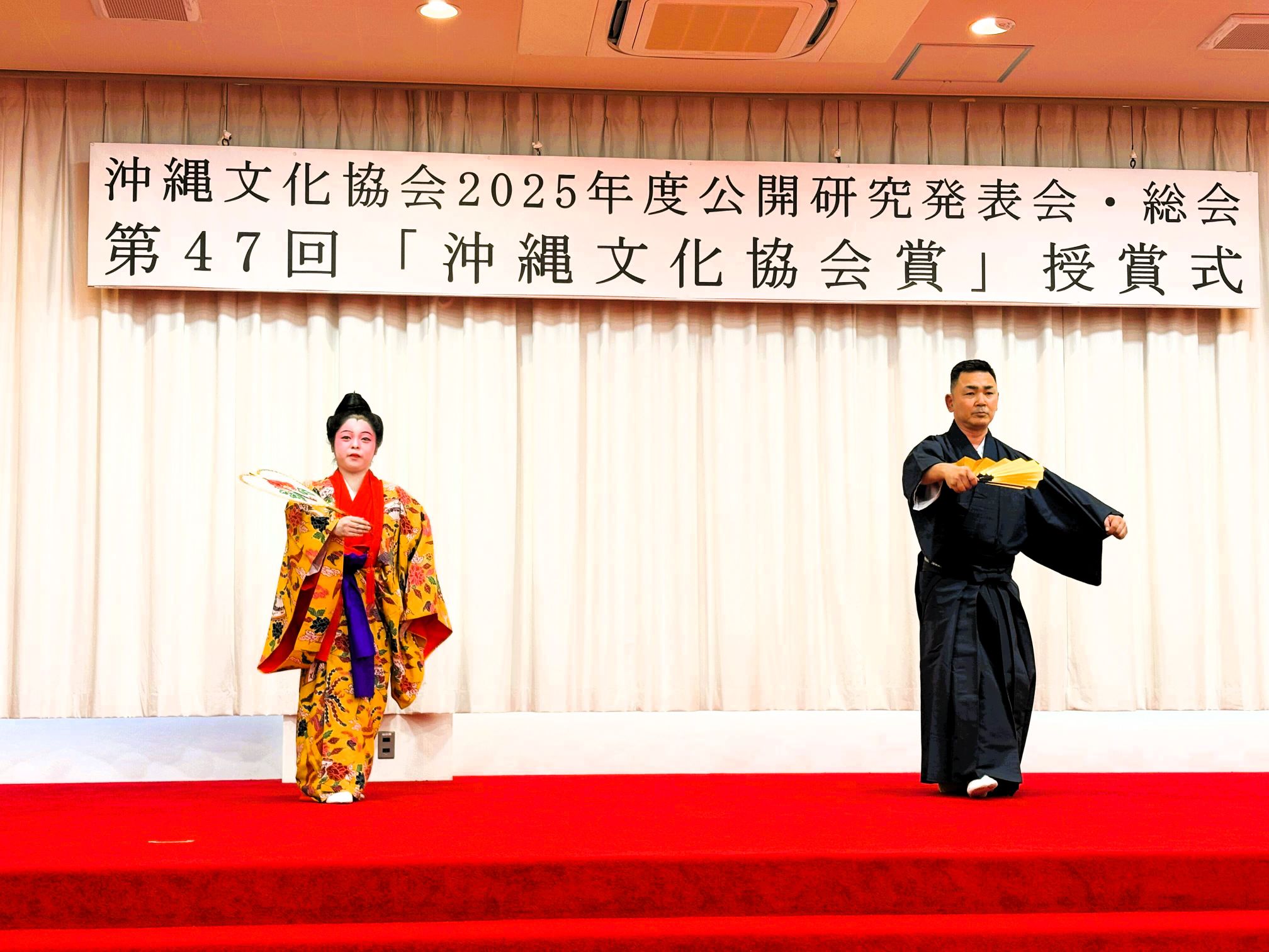 【沖縄文化協会賞の祝賀会が開催され、金城朝永賞を受賞した田場先生が演舞を披露しました!】
