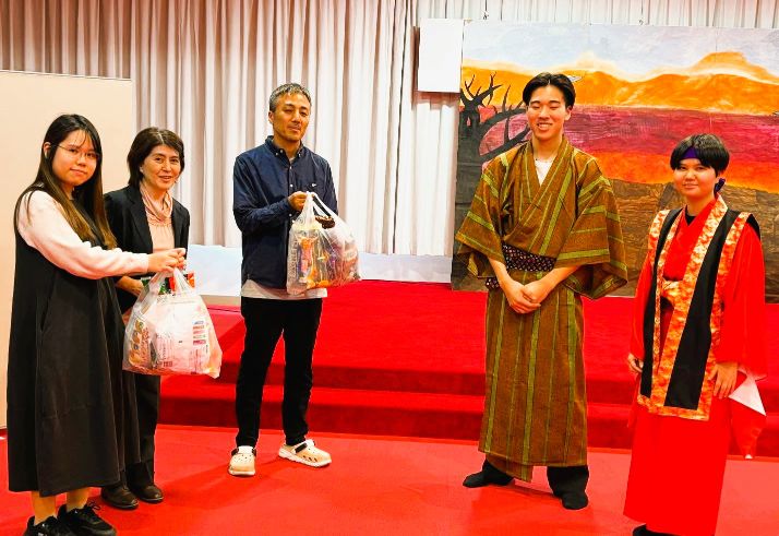 【1年生が取り組む「民話劇・鬼慶良間」、有志の2年生と日文の先生たちが激励に行ってきました!】