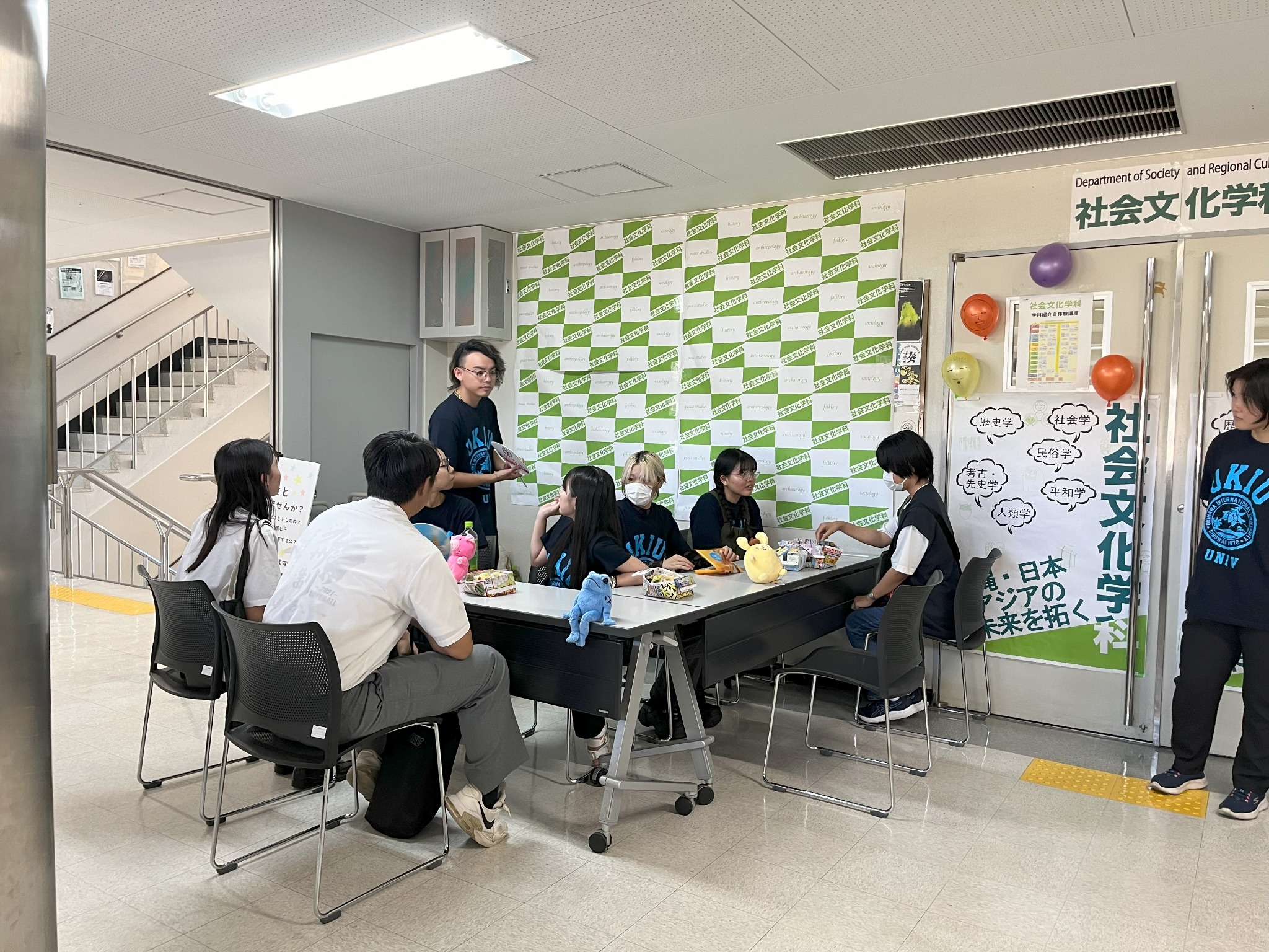 今回も、前回に引き続き本学科のブースでは先生方の出版された図書を並べたり、学生が実際に取り組んだ報告書を置いたり、ゼミの活動を紹介するポスターを掲示し、魅力を発信しました。