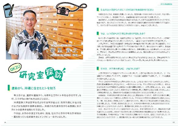 沖縄国際大学では学報が季節ごとに刊行されているのですが、最新号は、社会文化学科の新里先生や考古学ゼミの実習が掲載されております!