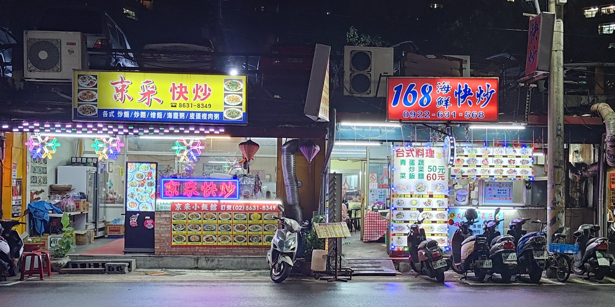 ↓は淡水にならぶ料理店。"快炒"というのが台湾の定食屋兼居酒屋です。