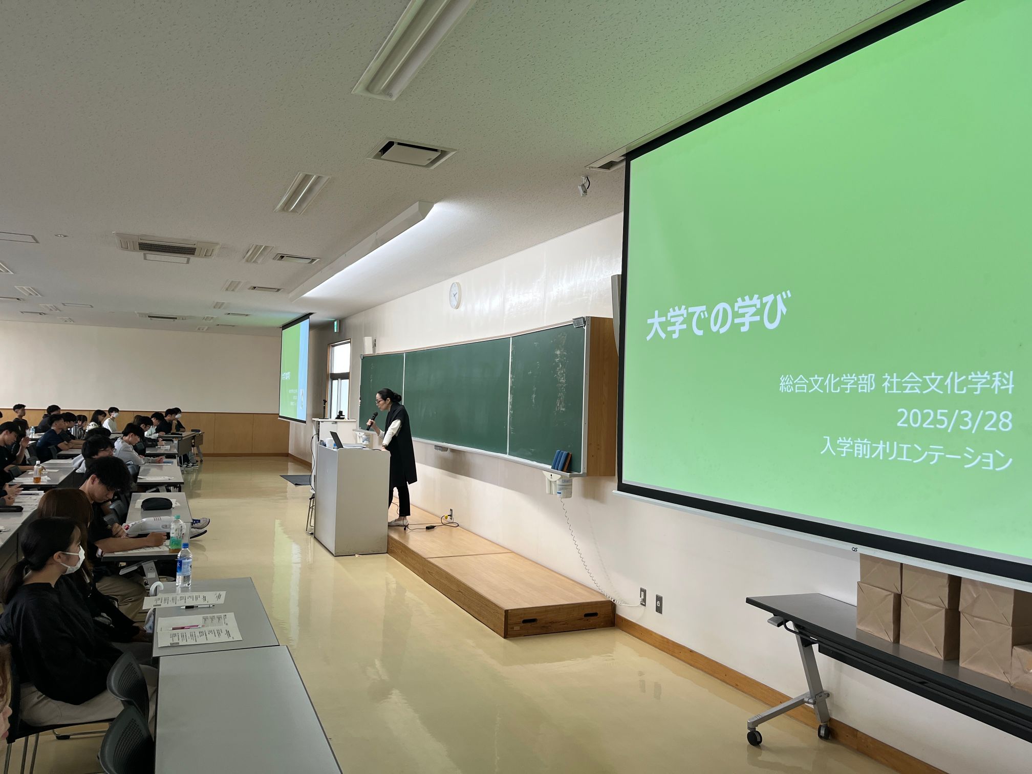 社会文化学科では入学前直前に、早期に本学の様子を感じてもらい、また先生や同級生あるいは上級生とも交流を持つ機会として入学前オリエンテーションを開催しております。