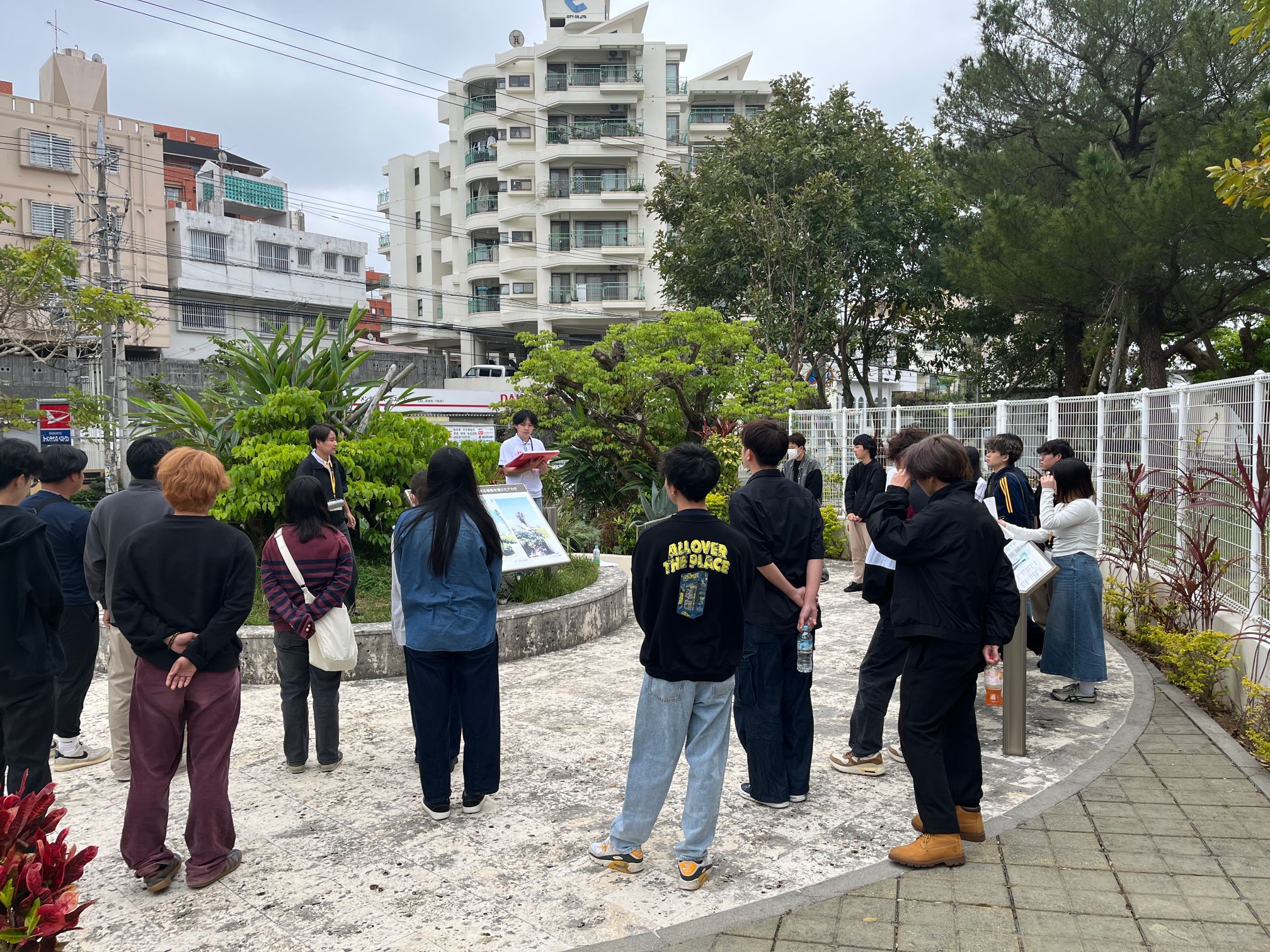 ミニフィールドワーク(学内ポケットパークでのヘリ墜落事故の解説)