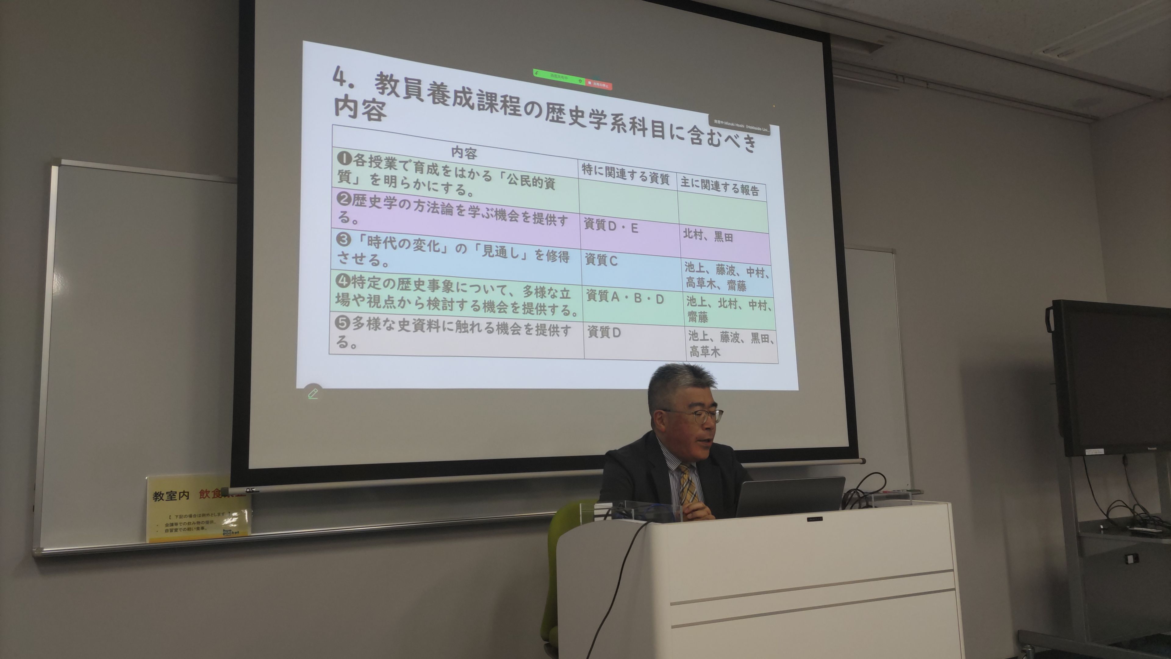 私は、歴史学分野の授業における「ミニマムスタンダード」について報告しました。