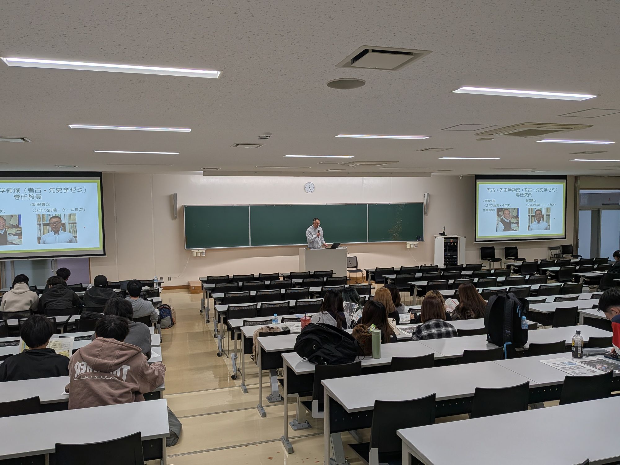 4限の時間帯には、社会平和、民俗人類、先史考古、歴史の4つの領域の先輩たちが、